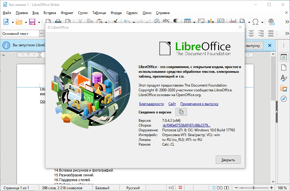 LibreOffice — бесплатный офисный пакет с открытым исходным кодом и богатыми функциональными возможностями. Поддерживает популярные операционные системы: Windows, Linux, MacOS X, Android и iOS. Основные возможности Работа с текстовыми документами. Создание презентаций. Использование формул. Работа с таблицами.
