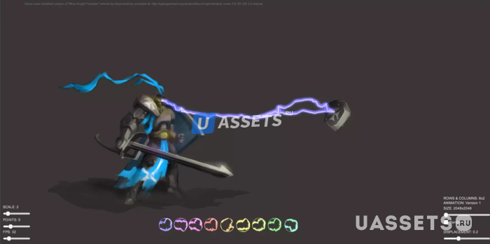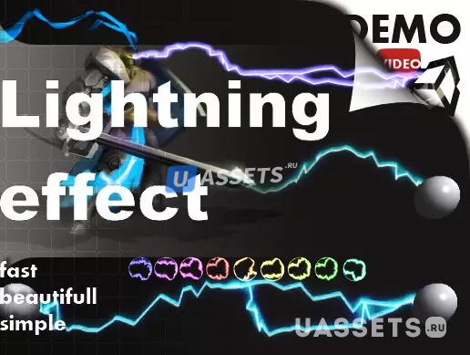 Визуализирует молнию между двумя точками с помощью Linerenderer и анимированной текстуры. Пакет содержит 3 анимации