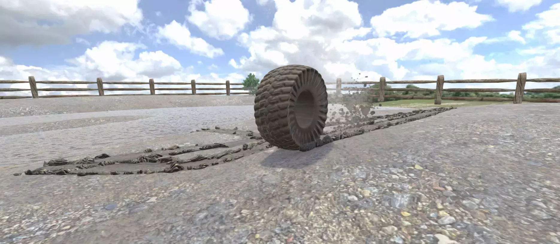 Трехмерные всплески на графике VFX придают дополнительную реалистичность взаимодействию с грязью.