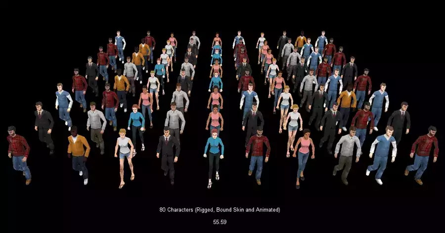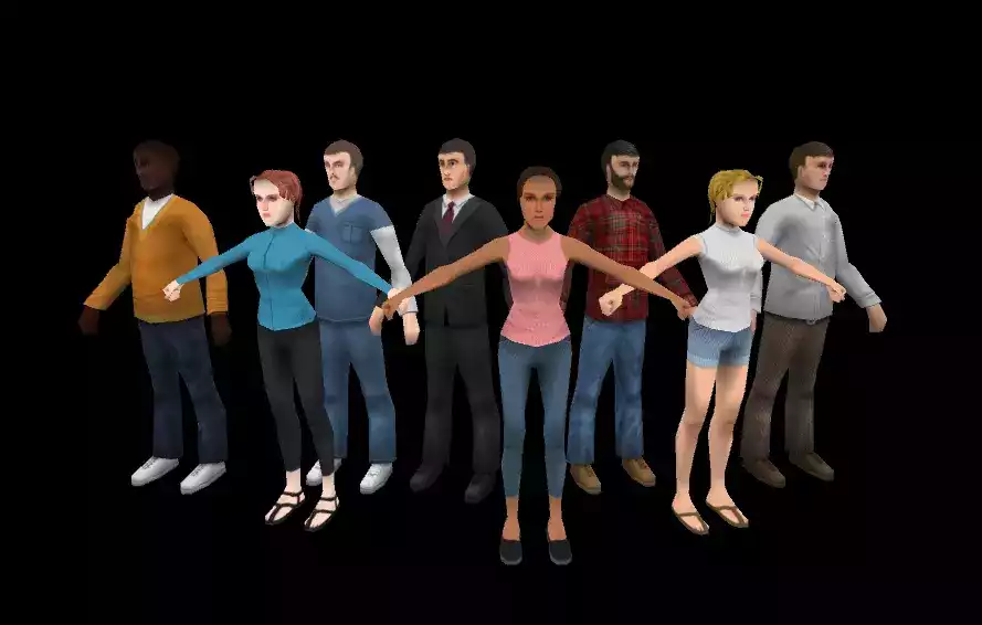 Гражданские персонажи с (23) анимациями, состоящими из различных анимаций бездействия, анимации ходьбы, бега, обстрела, различных типов атак, различных анимаций смерти и двух анимаций получения удара/попадания.