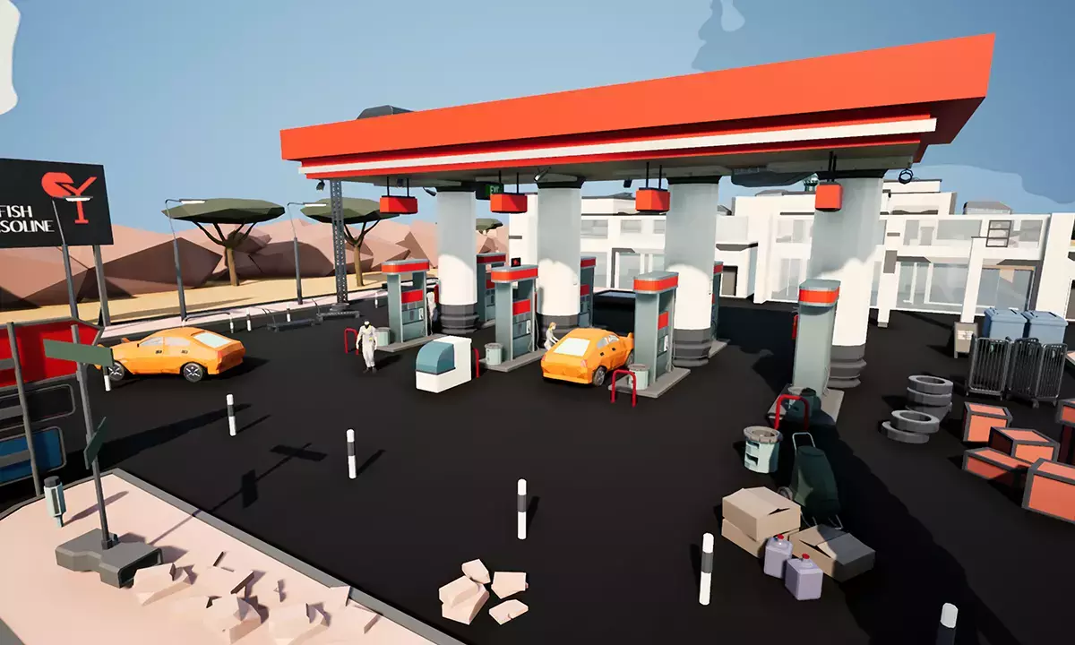 В комплект поставки входят различные здания, реквизит, элементы окружающей среды и многое другое для создания собственных сцен на заправочной станции!