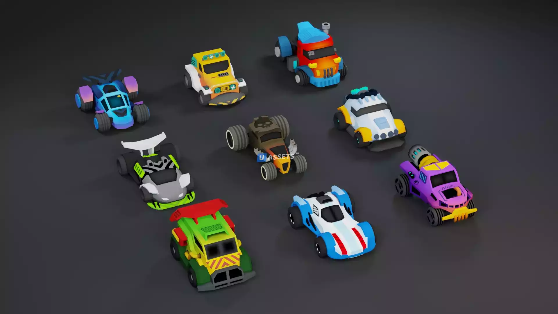 Дружелюбный набор мобильных низкополигональных автомобилей. Уникальные модели автомобилей с оригинальными текстурами отлично подойдут для вашей игры любого типа. Качественные 3D модели и готовые префабы с материалами.
