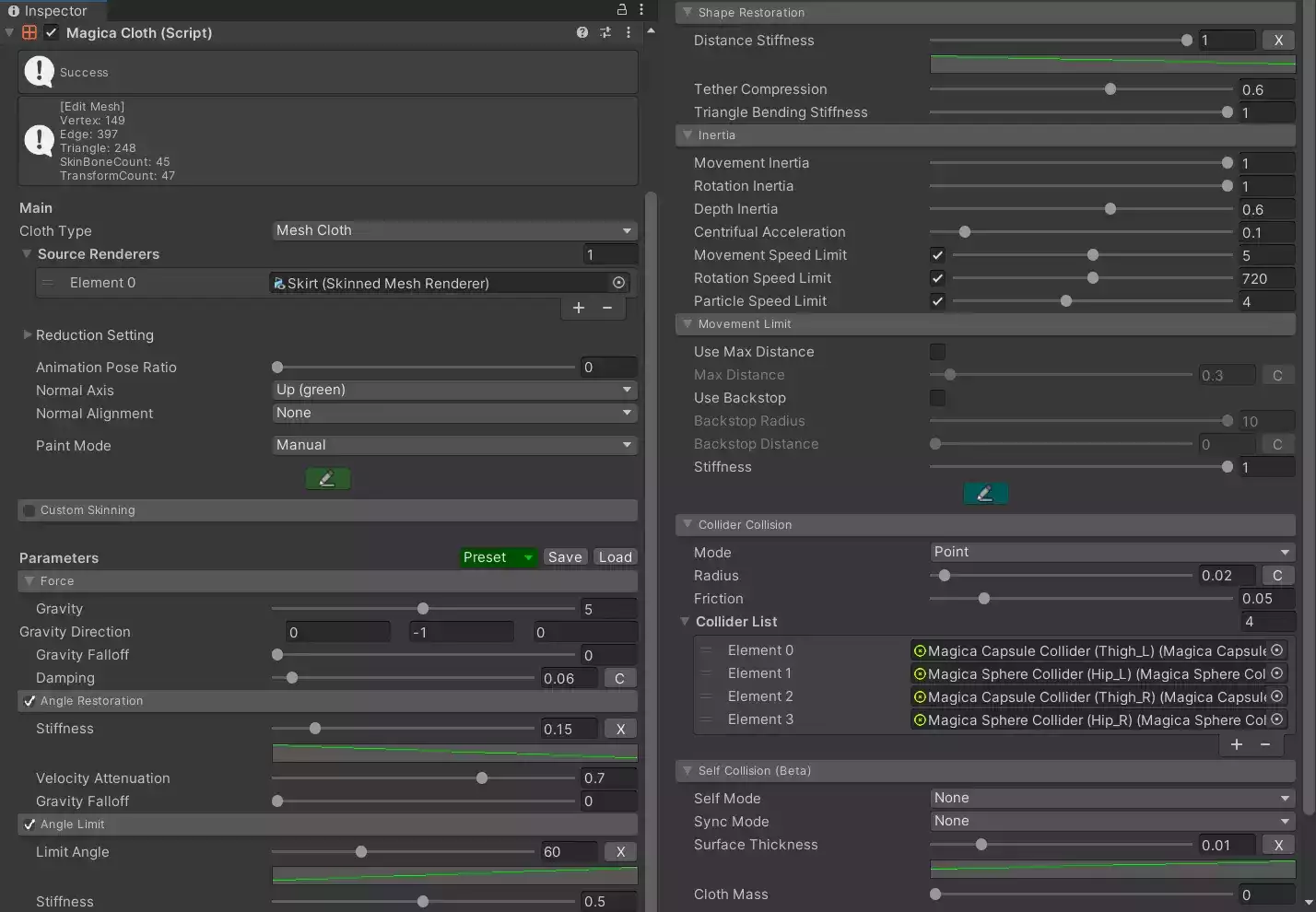 MagicaCloth2 - это система моделирования ткани, которую можно использовать как с Transform, так и с Mesh.