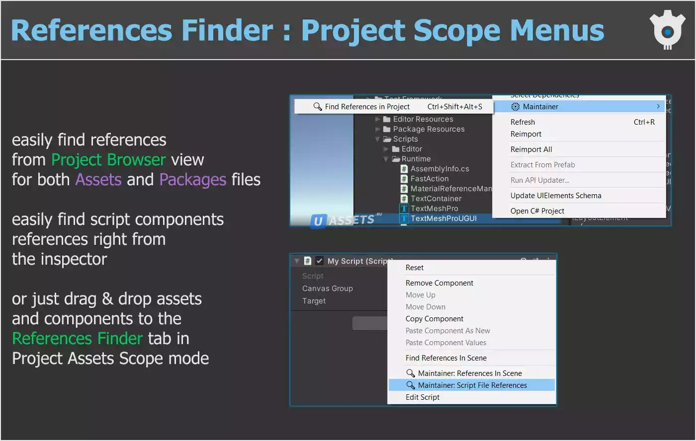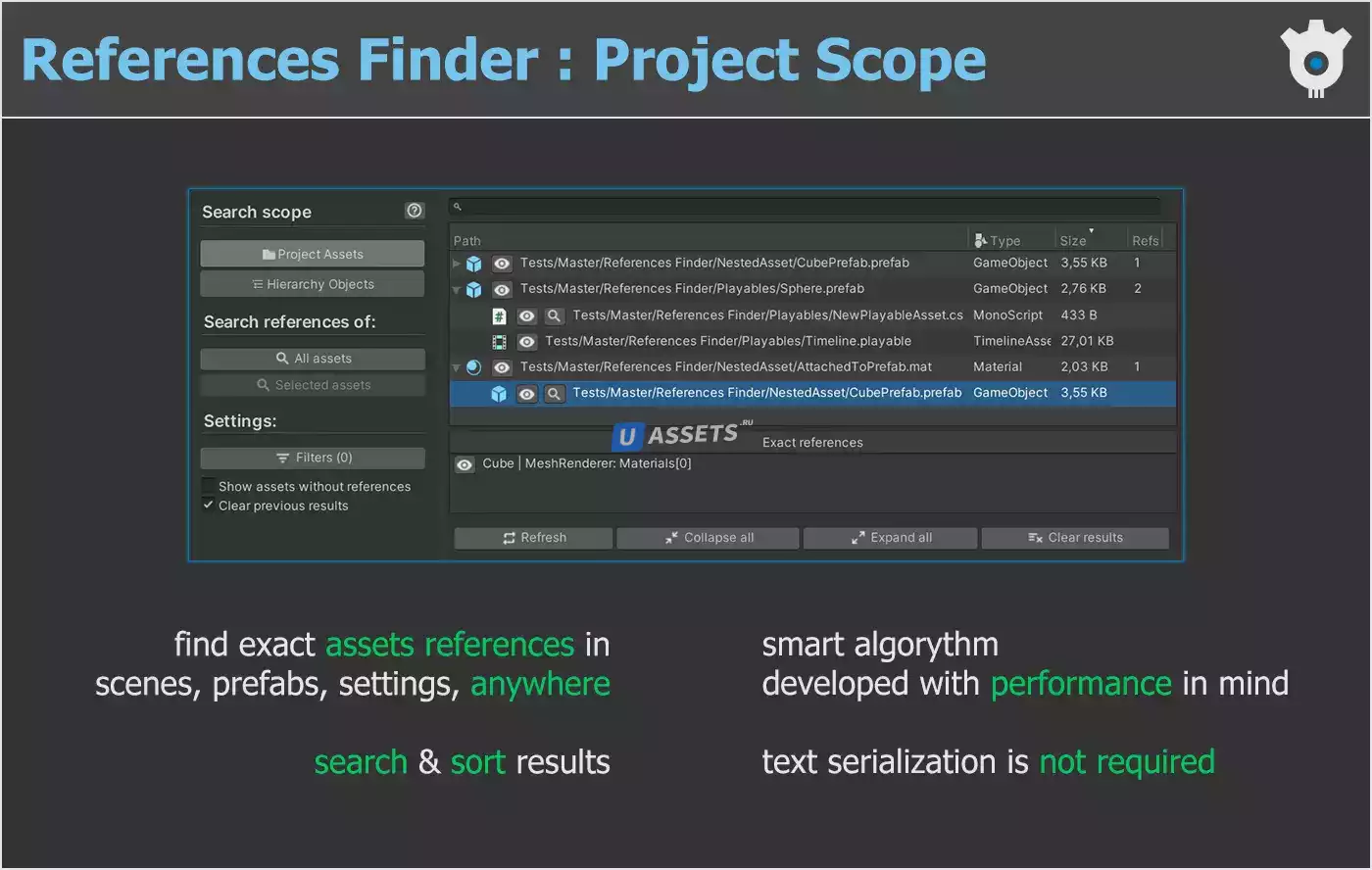 • поиск ссылок на активы и иерархические ссылки