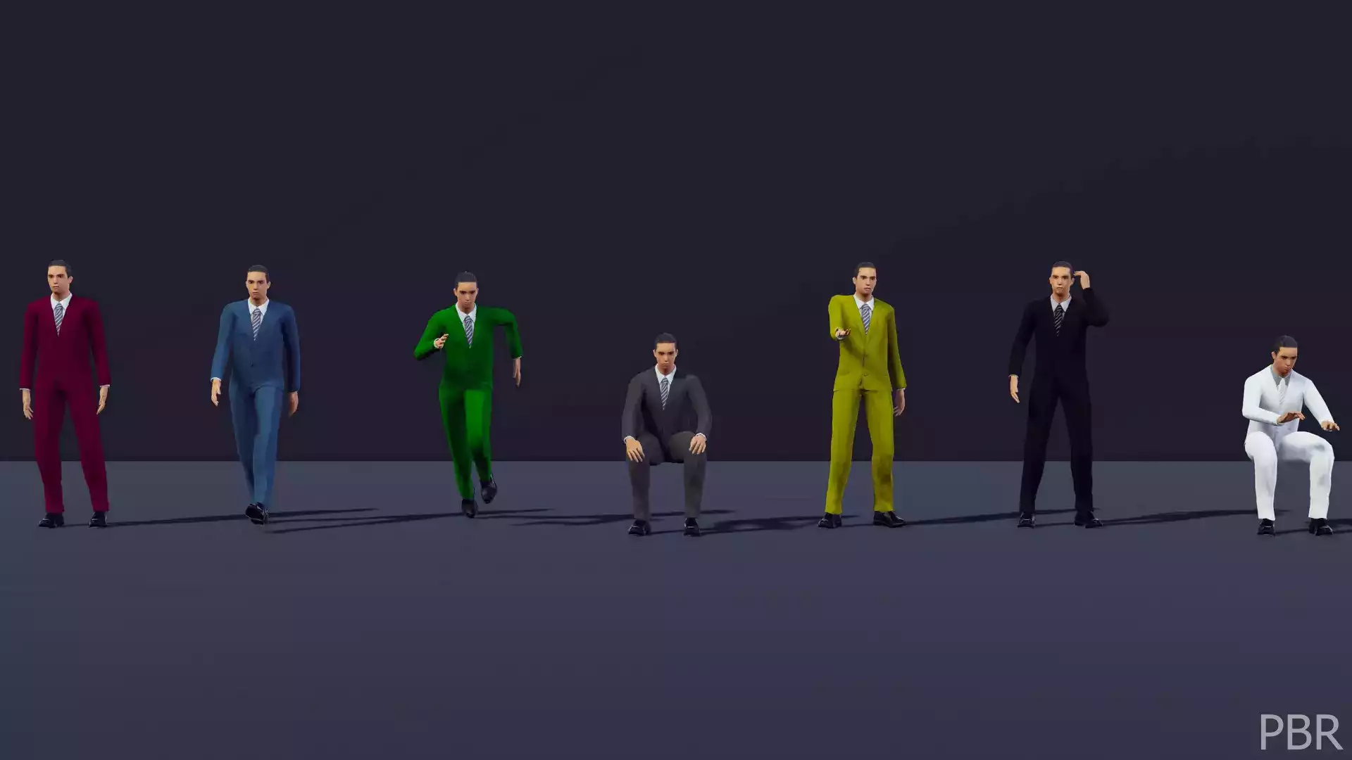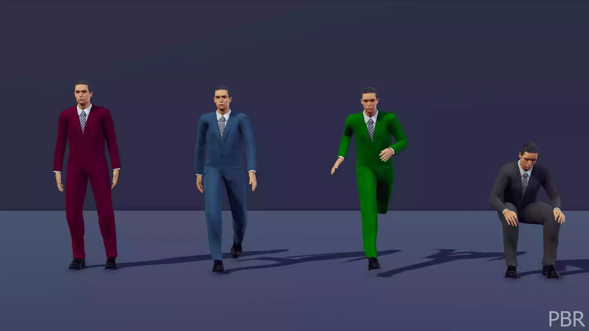 Анимации - это ходьба, Сидение, разговор, Разговор по телефону, бег, бездействие и набор текста.