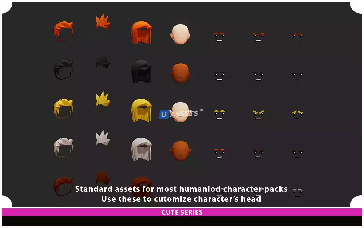 Все модульные пакеты персонажей поставляются со следующими бесплатными стандартными активами (включая этот пакет). Активы: