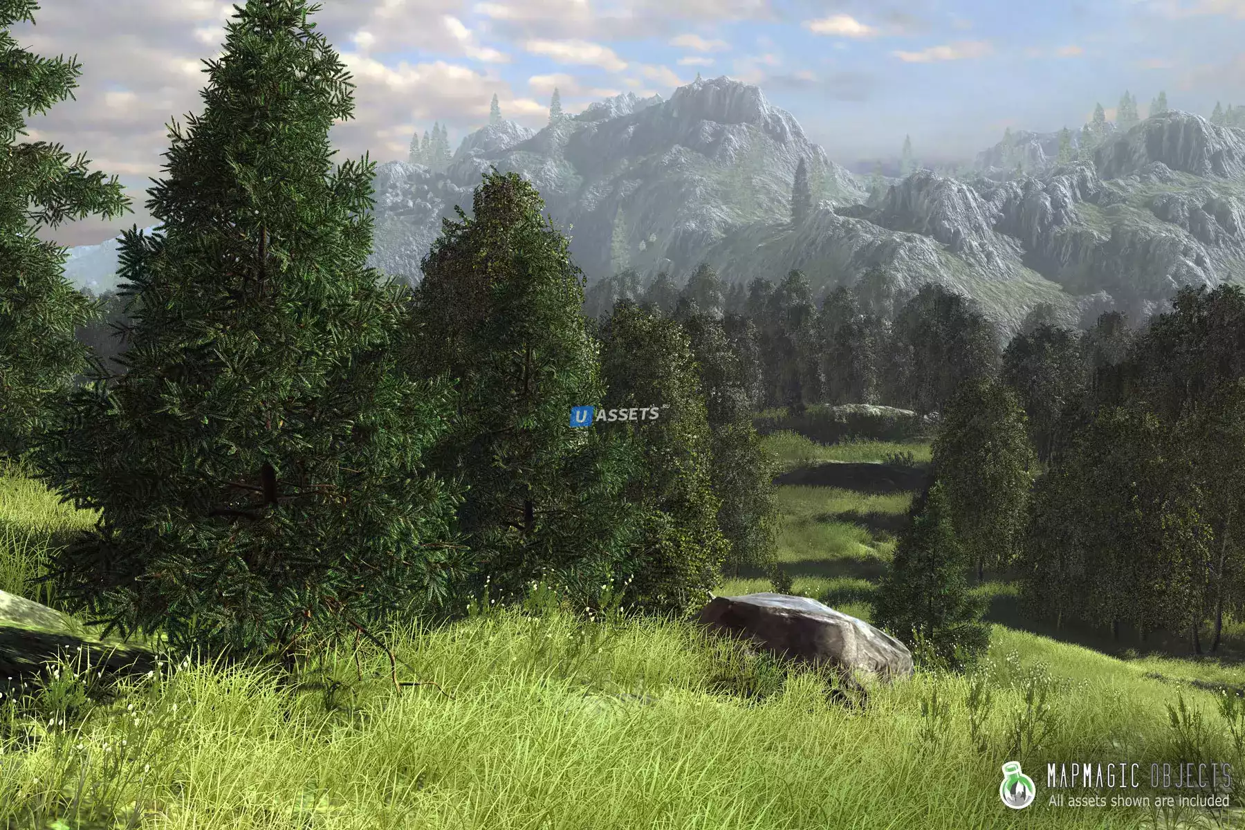 MapMagic - это основанный на узлах процедурный и бесконечный генератор игровых карт. Может создать воспроизводимый и симпатичный ландшафт любого размера за пару минут с помощью рабочего процесса graph and nodes. Также поддерживается создание бесконечных карт путем создания новых ландшафтов в игровом режиме. Модули, входящие в комплект, могут размещать объекты, биомы и дороги.