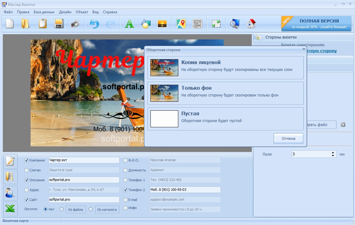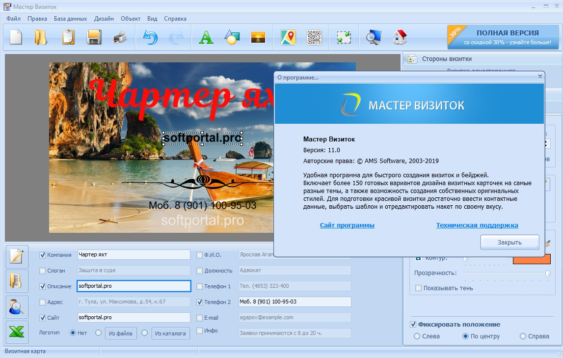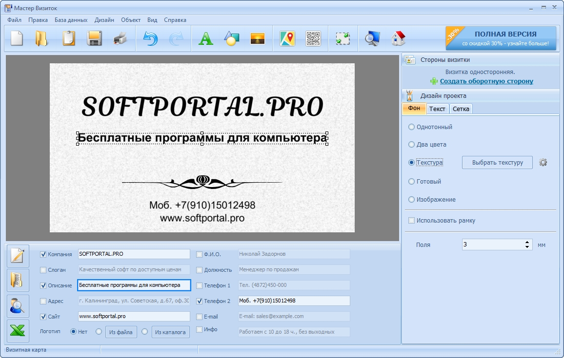 Мастер Визиток – специальная программа которая позволит профессионально в кратчайшие сроки создать визитки, бейджи, клубные, дисконтные или подарочные карты, а самое важное, пользователю не требуется обладать специальными знаниями графического дизайнера, для этой задачи необходим лишь компьютер на базе OS