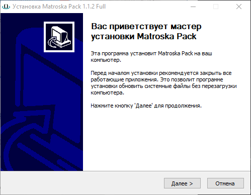 Matroska Pack Full - это пакет кодеков и фильтров для воспроизведения фильмов в формате MKV и MKA.