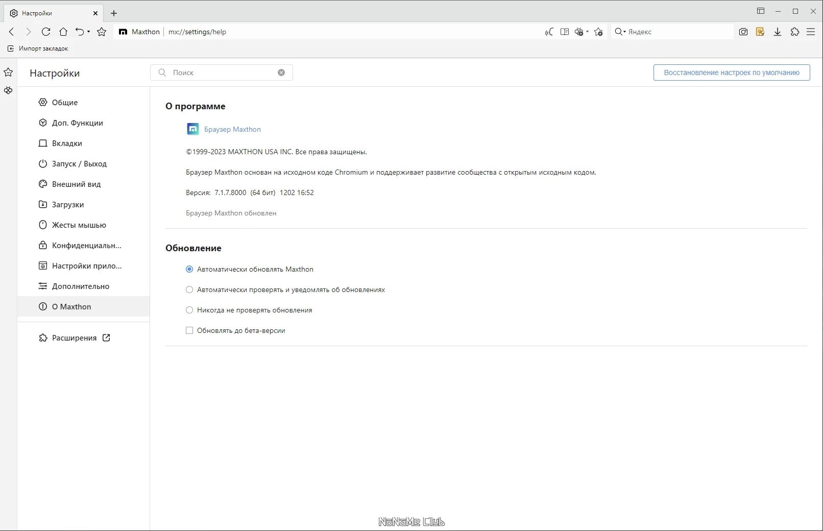 Maxthon Browser 7.1.7.8000 + Portable — это многофункциональный веб-браузер, оснащенный широким набором встроенных инструментов для комфортного и безопасного серфинга. Его ключевой особенностью является использование двух движков рендеринга — Trident и WebKit, что обеспечивает высокую скорость и корректное отображение любых веб-страниц, включая современный контент на HTML5.