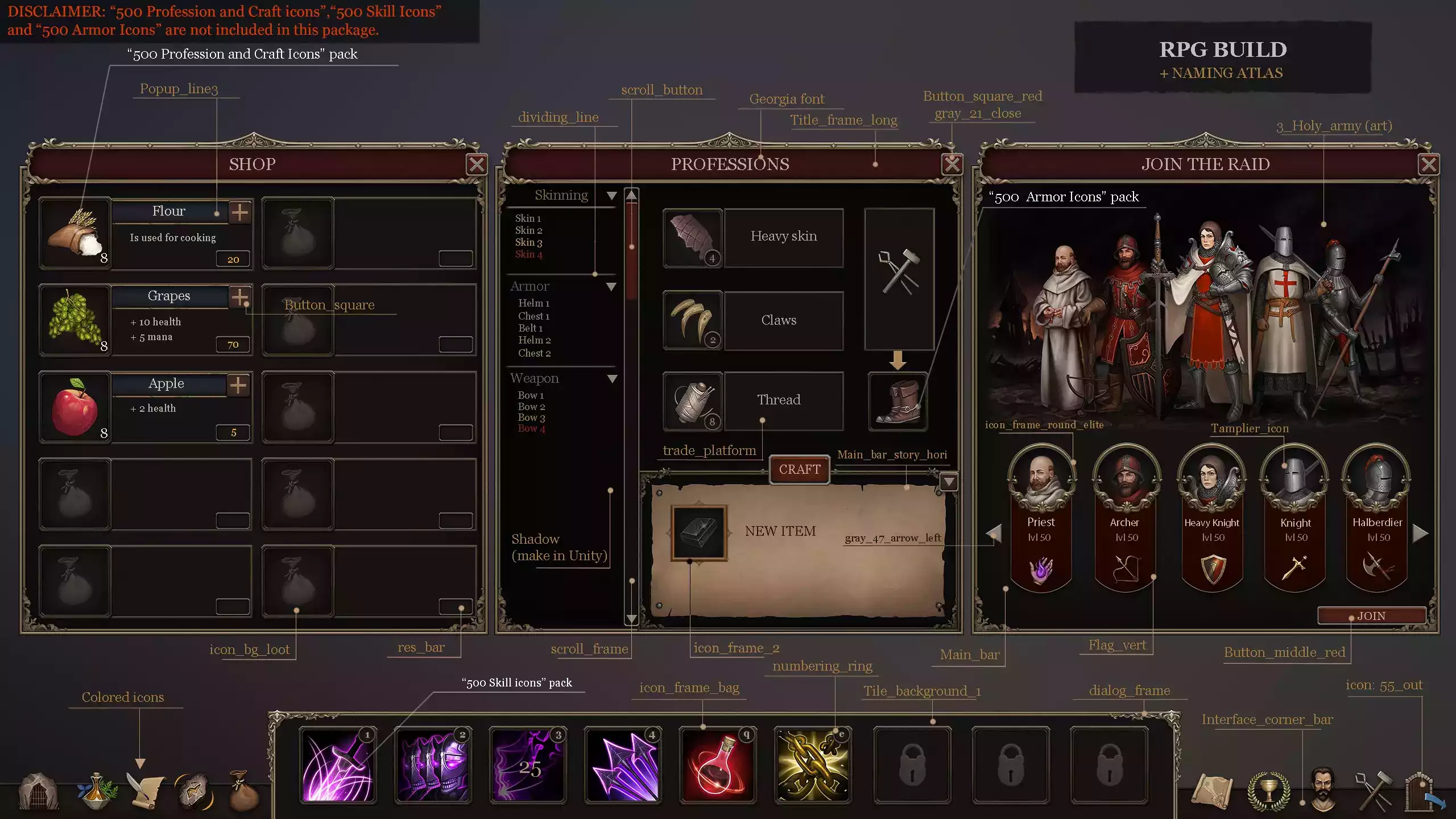 Большой пакет в стиле Средневекового королевства включает в себя большое количество рисунков, иконок, элементов пользовательского интерфейса, полную карту мира и значки цивилизаций. Это позволит вам создать игру или может стать отличным дополнением к вашей 3D-игре. Вы также можете создать свою собственную анимацию королей для диалогов, создавать уникальные панели и окна для игр в формате 4k. Доступны два уникальных варианта оформления: классический (холодная цветовая палитра) и белое золото (теплая цветовая палитра).