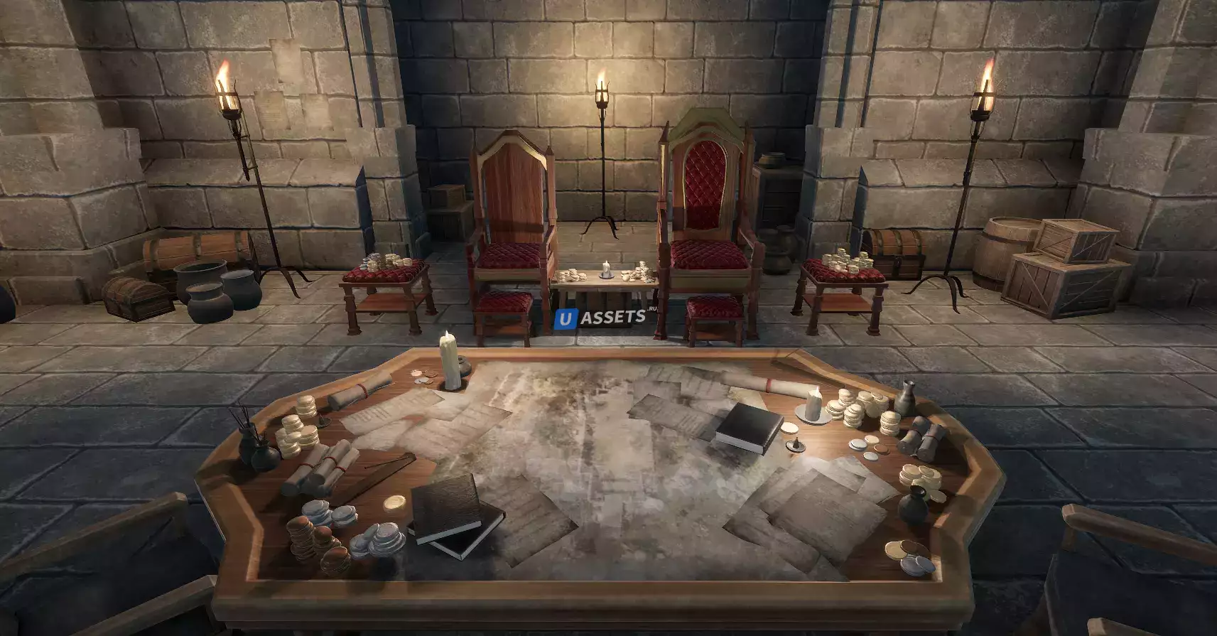 - 11 реквизитов для тронного зала (кресло короля и королевы, бра, люстры)