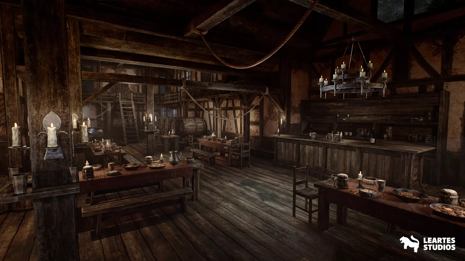 Средневековая таверна имеет два легких подуровня с потоковой передачей уровней.