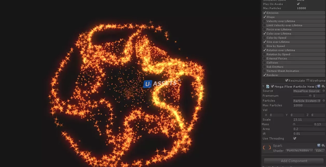 MegaFlow - это набор систем, которые позволяют использовать векторные поля для управления движением объектов или систем частиц в Unity. Векторные поля представляют собой 2D или 3D сетки значений, которые описывают направление и величину скоростей для этой точки в пространстве. Векторное поле может генерироваться такими системами, как Maya Fluids, FumeFX, Krakatoa, RealFlow и т.д. MegaFlow может импортировать файлы, созданные этими системами, в виде файлов .FXD или .FGA, у него также есть экспортер для Maya, который экспортирует любое моделирование жидкости Maya в MegaFlow.Формат FLW. Затем вы можете импортировать один кадр или несколько кадров в систему MegaFlow в Unity, а затем использовать ее для управления движением частиц либо из Сюрикена, либо из устаревшей системы частиц, либо для управления движением твердых тел или просто обычных объектов. Не волнуйтесь, если у вас нет доступа к программному обеспечению для моделирования жидкостей, так как MegaFlow также поставляется с системой, которая позволяет создавать собственные векторные поля внутри Unity, используя несколько сплайнов для определения направлений и сил потока.