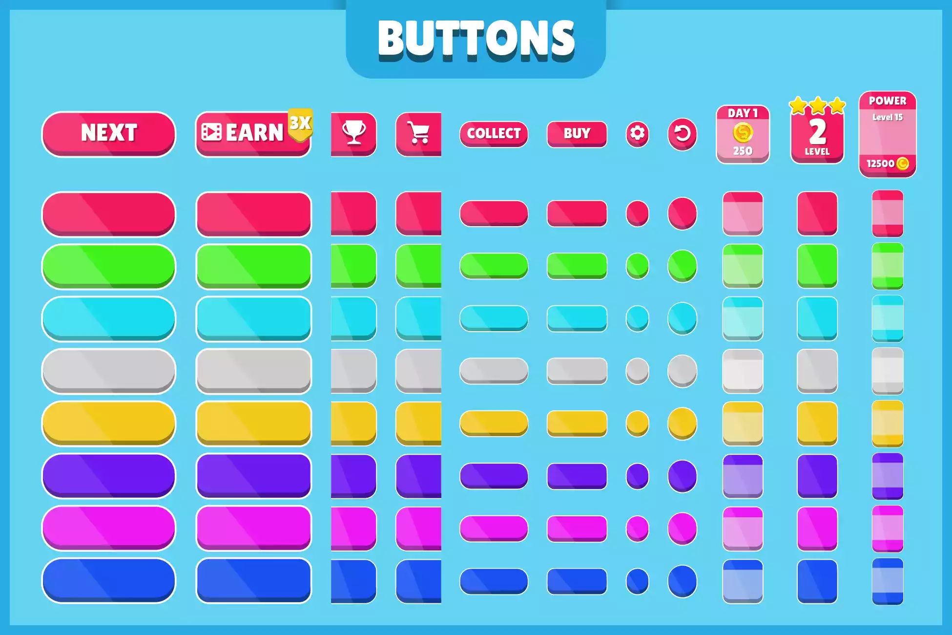Mega Hyper Casual GUI Pack — это настраиваемый, гибкий и простой в использовании пакет игрового пользовательского интерфейса для создания идеальных пользовательских интерфейсов для ваших игр. Этот пакет идеально подходит для всех разработчиков, которые хотят создать мобильную игру Hyper Casual.