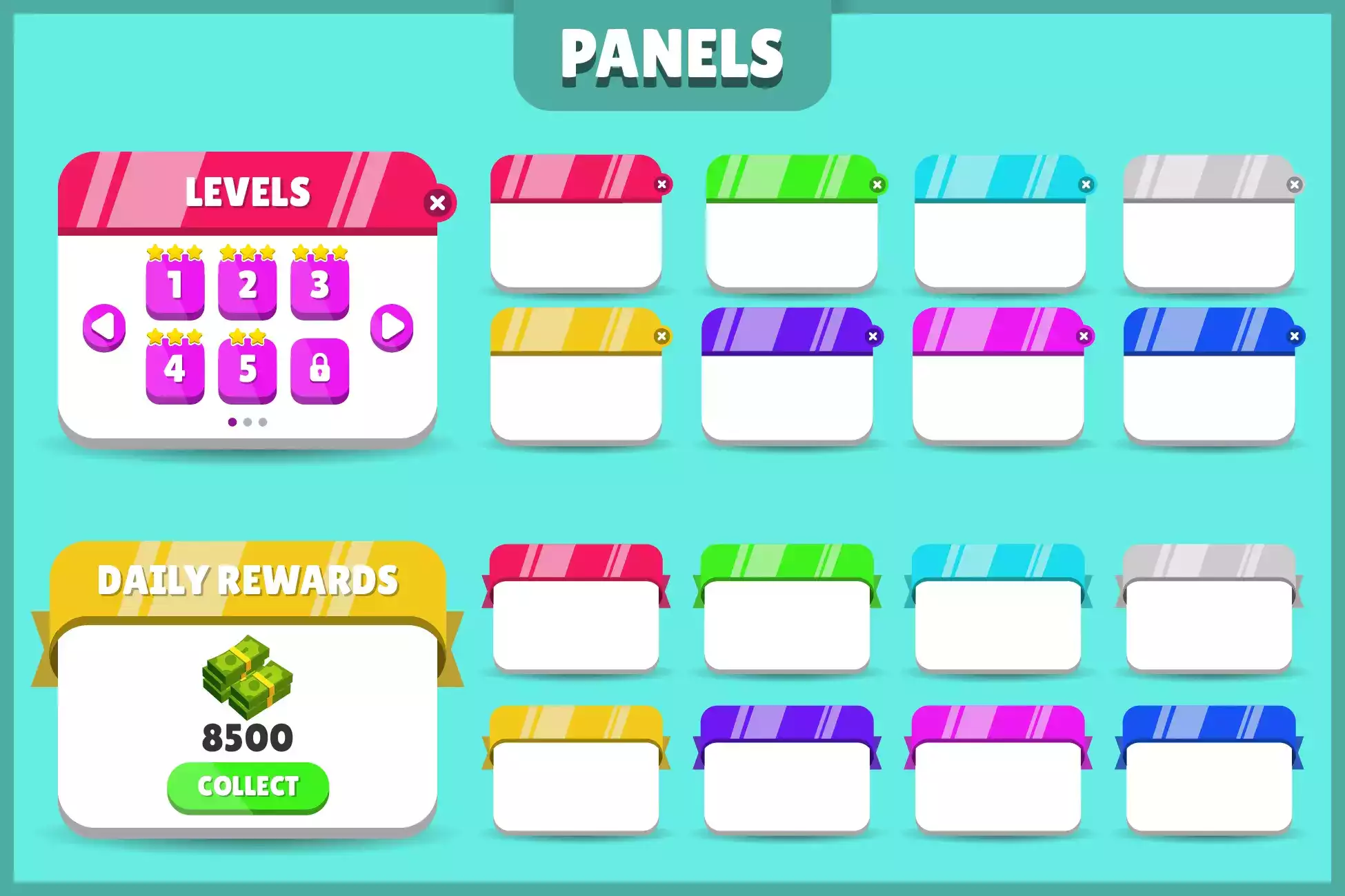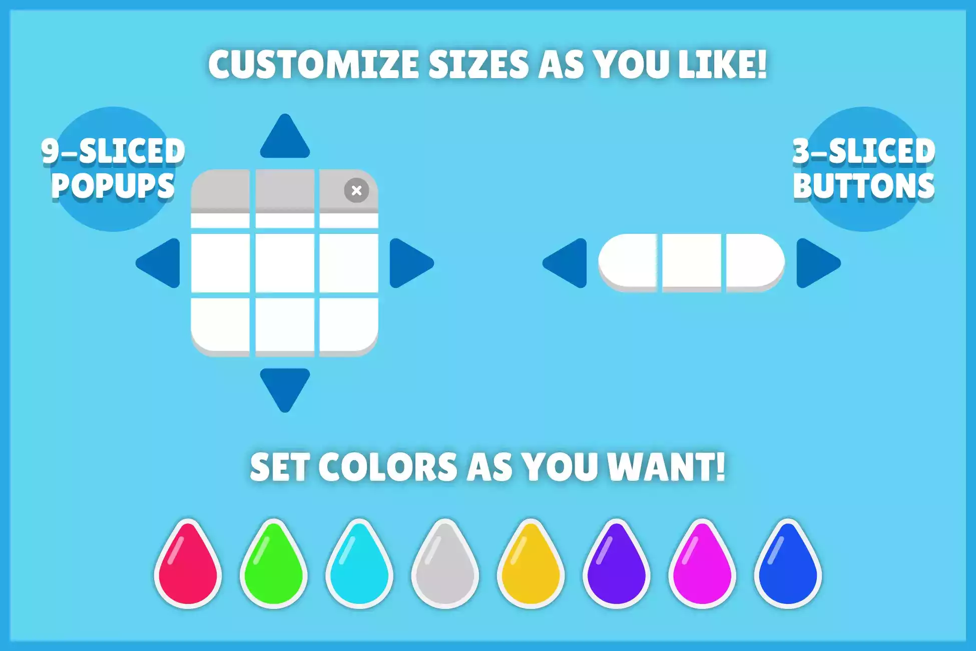 300 элементов для настройки вашего интерфейса (кнопки, значки, всплывающие окна, фоны, индикаторы выполнения...)