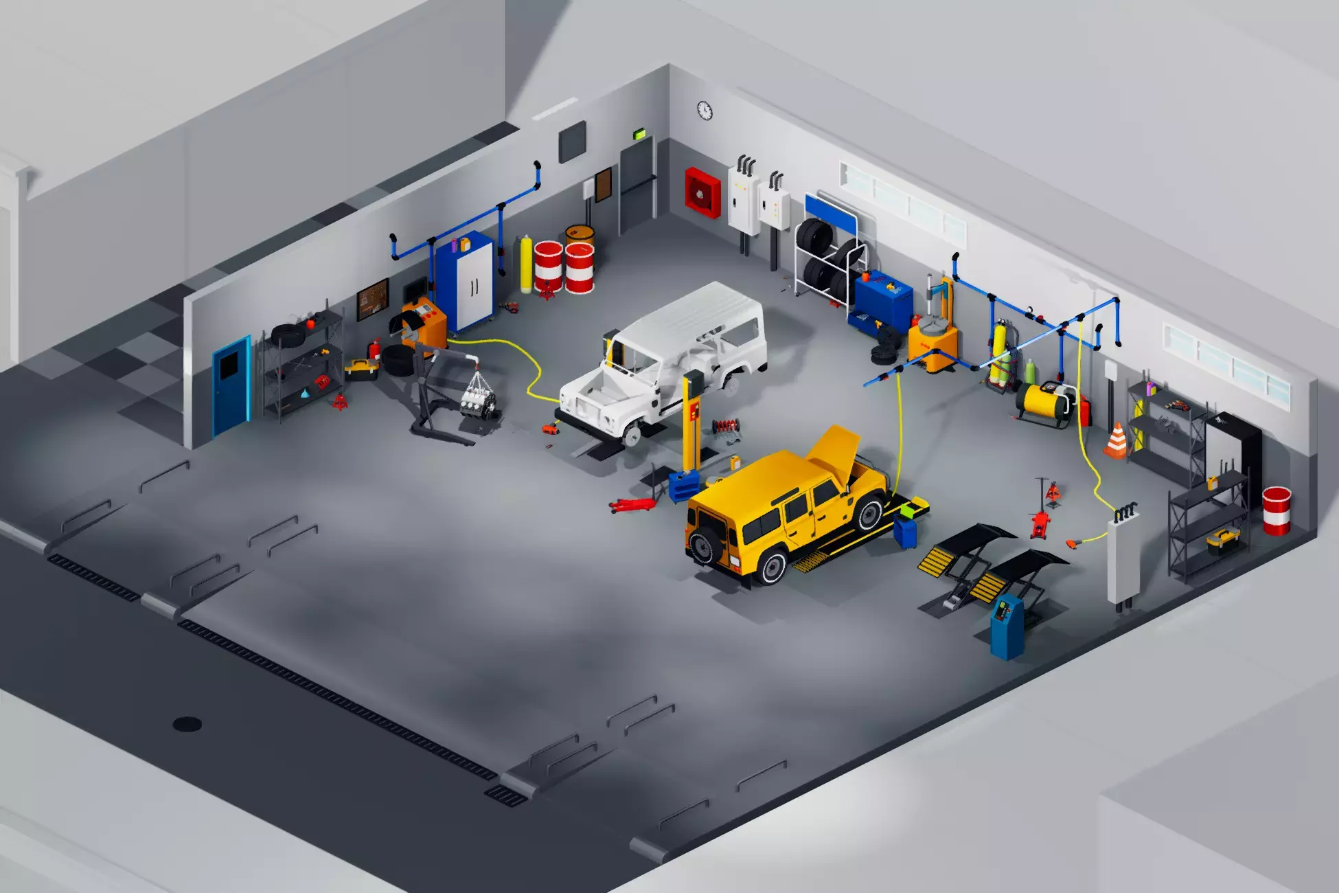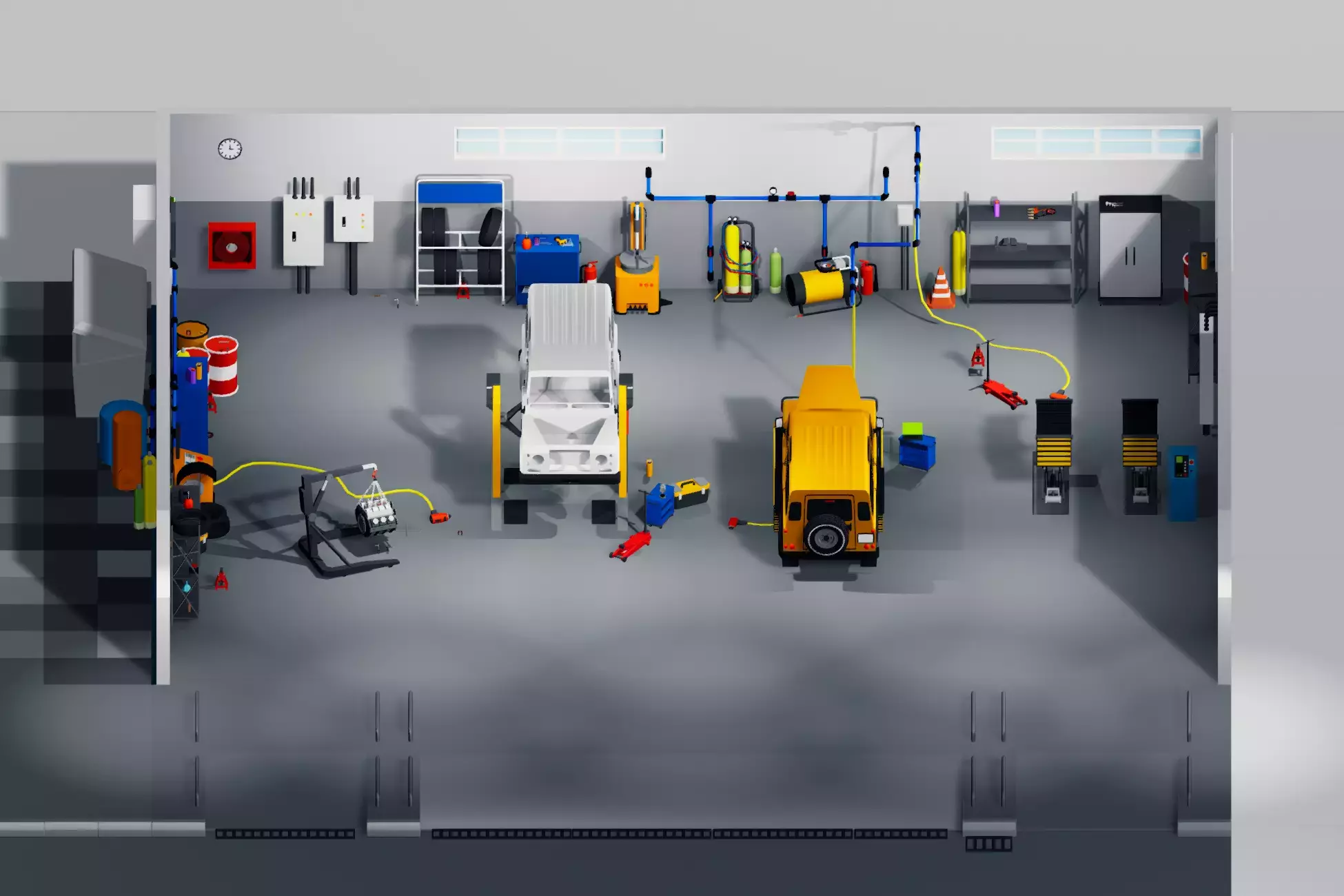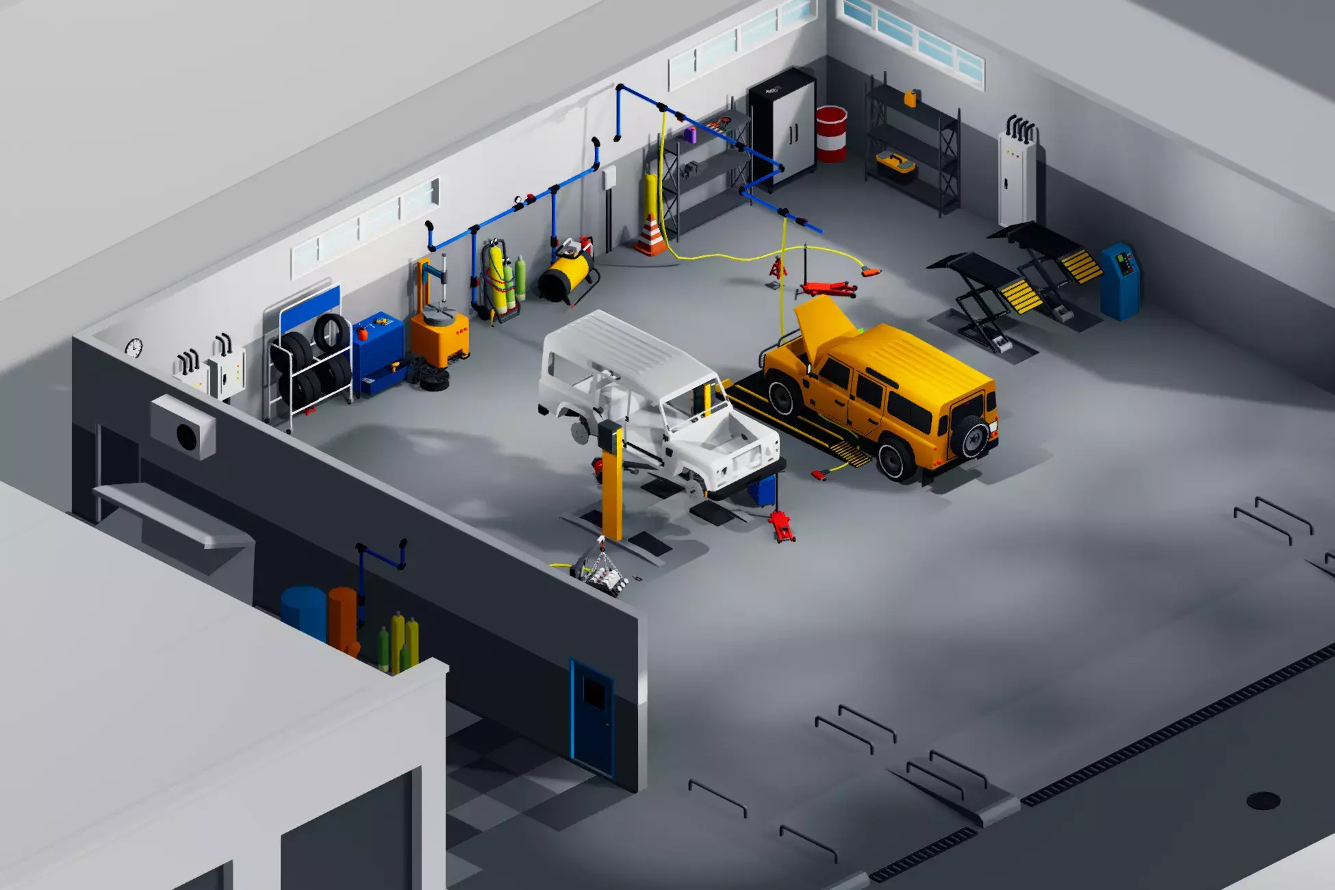 Модульный пакет для создания сцены работы автомеханика в вашей игре.