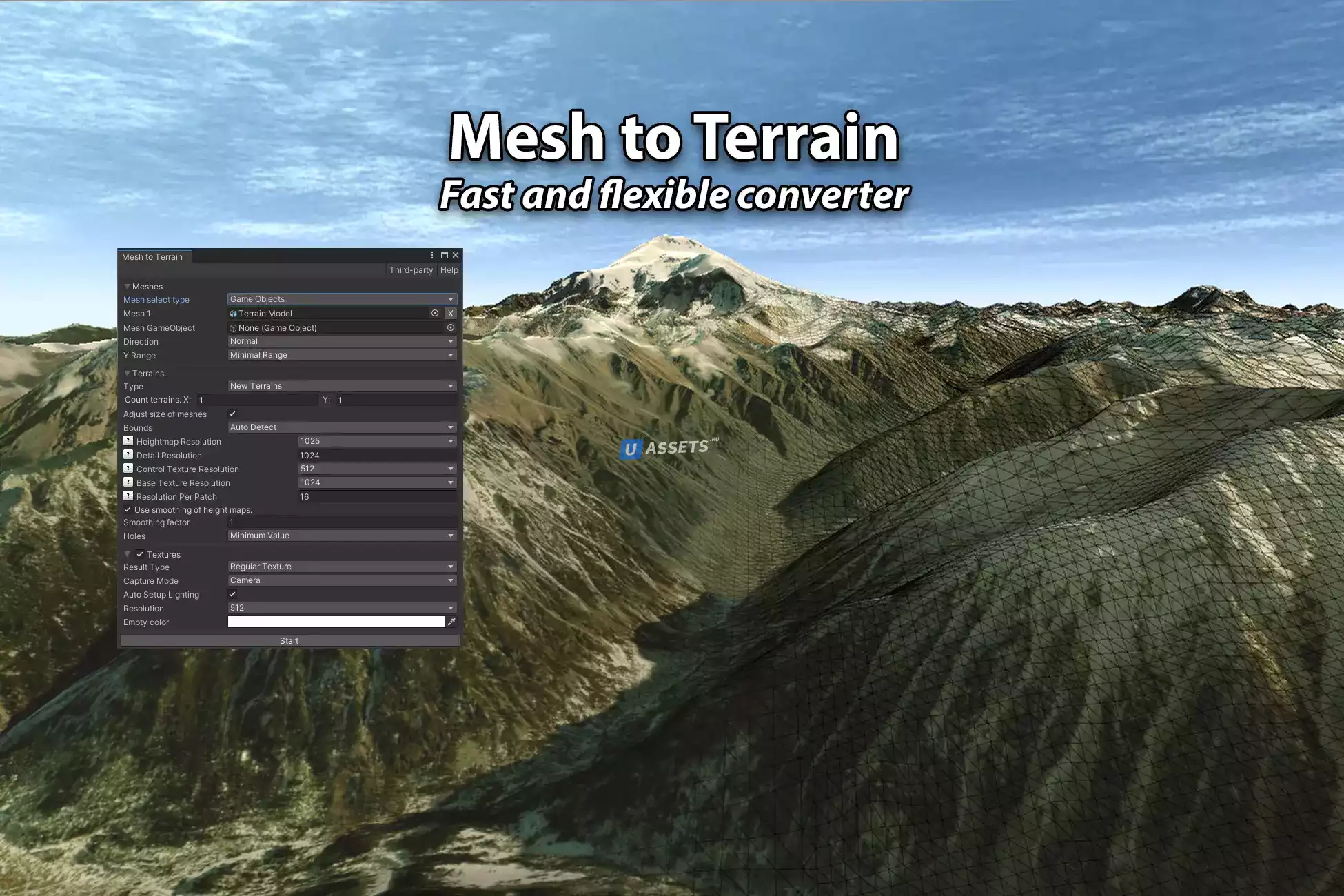 Mesh to Terrain - это инструмент для простого и быстрого преобразования 3D-модели местности, созданной в 3ds Max, Terragen или любом другом редакторе, в Unity Terrains.