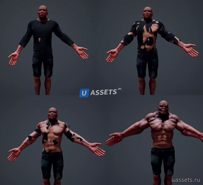 - создание динамической маски в реальном времени для мутации или разрушения тела ,