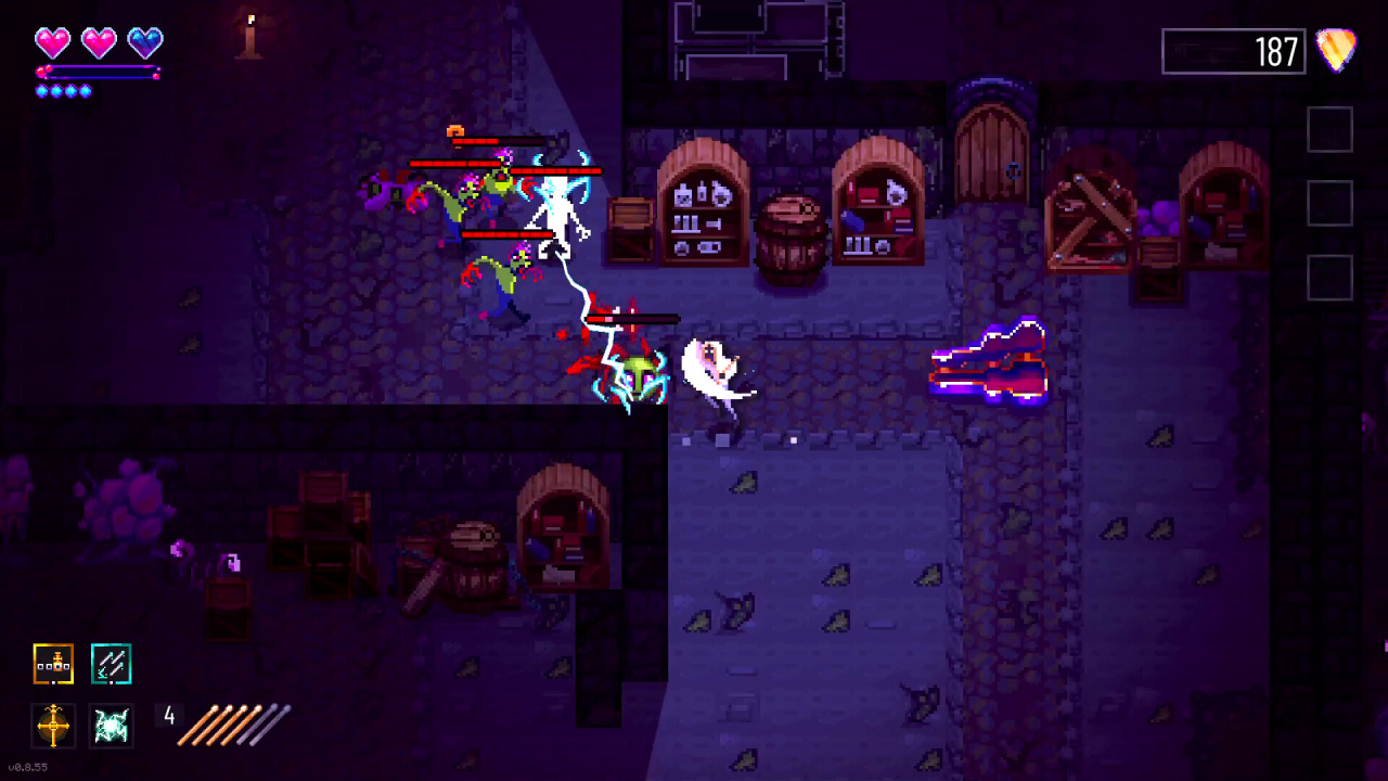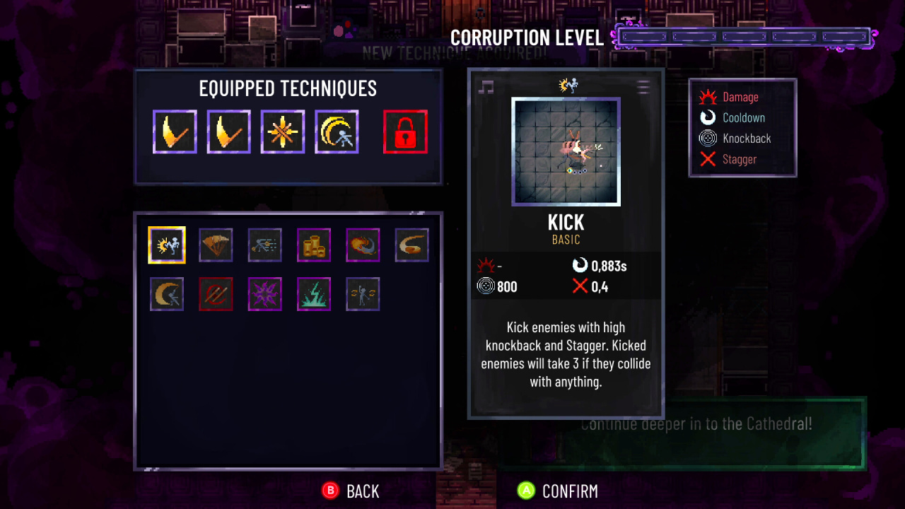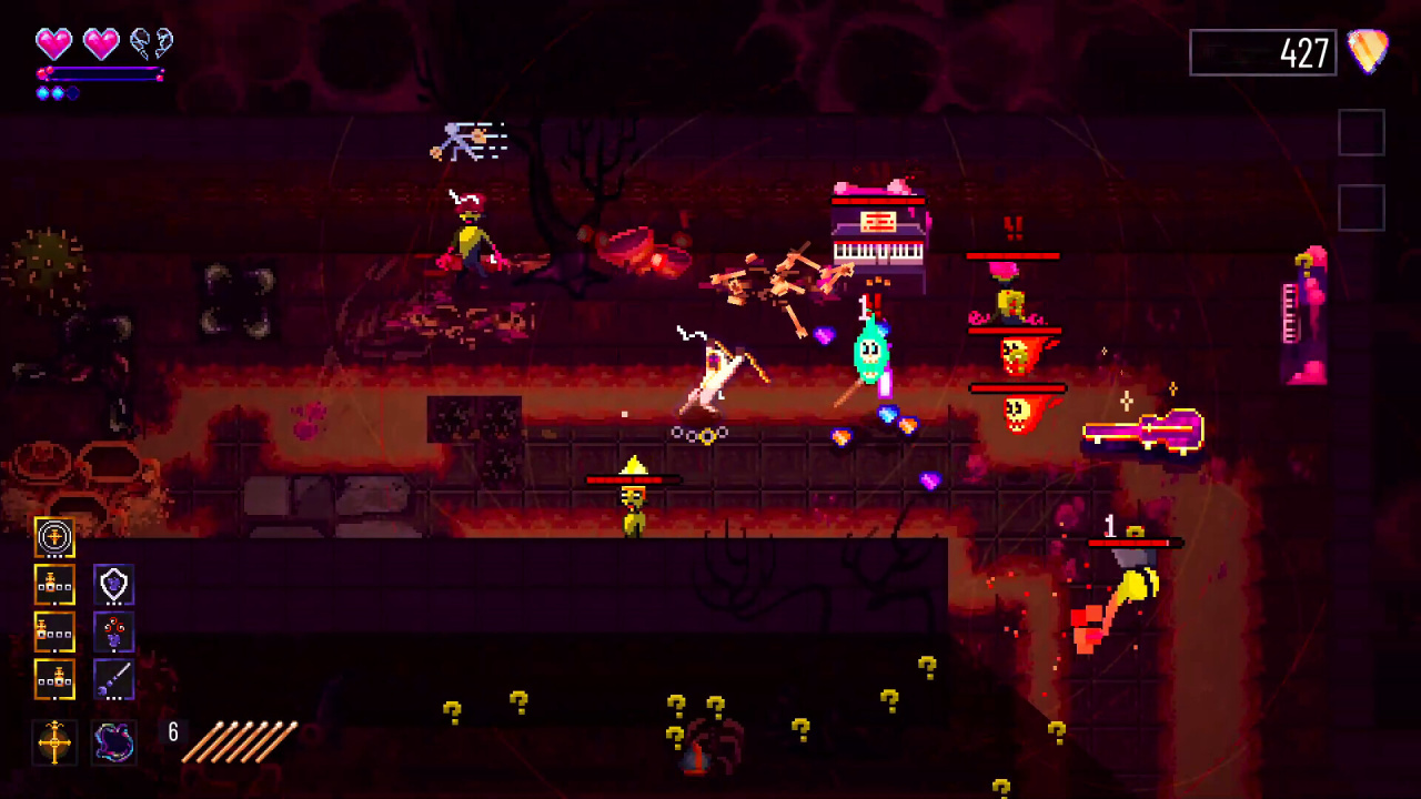 Вооружившись расширяющимся плейлистом, протагонист прорывается сквозь осквернённые катакомбы и церковные залы. Игровой процесс здесь не завязан на ритм; это прямое сражение, где барабанные палочки служат основным оружием. В финале каждой зоны один из музыкантов вызывает героя на дуэль. Каждый артист, от клавишника до гитариста, проведёт уникальный поединок со своим арсеналом приёмов, и главному герою нужно будет одержать над ними верх, чтобы двигаться дальше. Только победив всех оппонентов, можно обрести долгожданную свободу в этой игре.