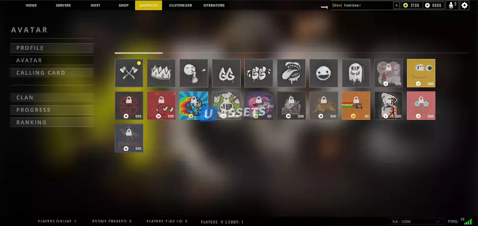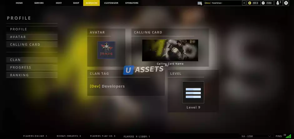 Игроки могут выбрать и персонализировать свою табличку с именем, выбрав свои любимые эмблемы и визитные карточки в окне казармы; они будут показаны в пользовательском интерфейсе Kill Cam (оба синхронизированы в многопользовательском режиме), вы можете настроить разблокировку каждой эмблемы и карточек игроков, чтобы они могли быть разблокированы по умолчанию или требовались для разблокировки по мере развития (XP), или их нужно было приобрести.