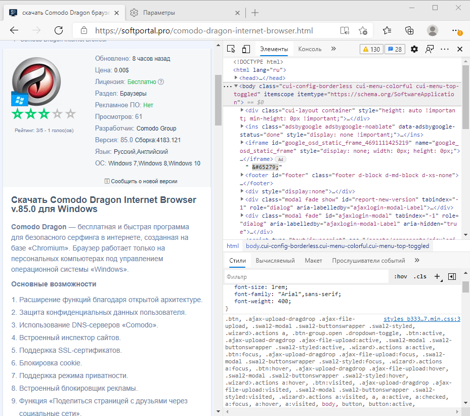 В браузер встроен блокировщик рекламы, блокирующий до 95% всплывающих окон.