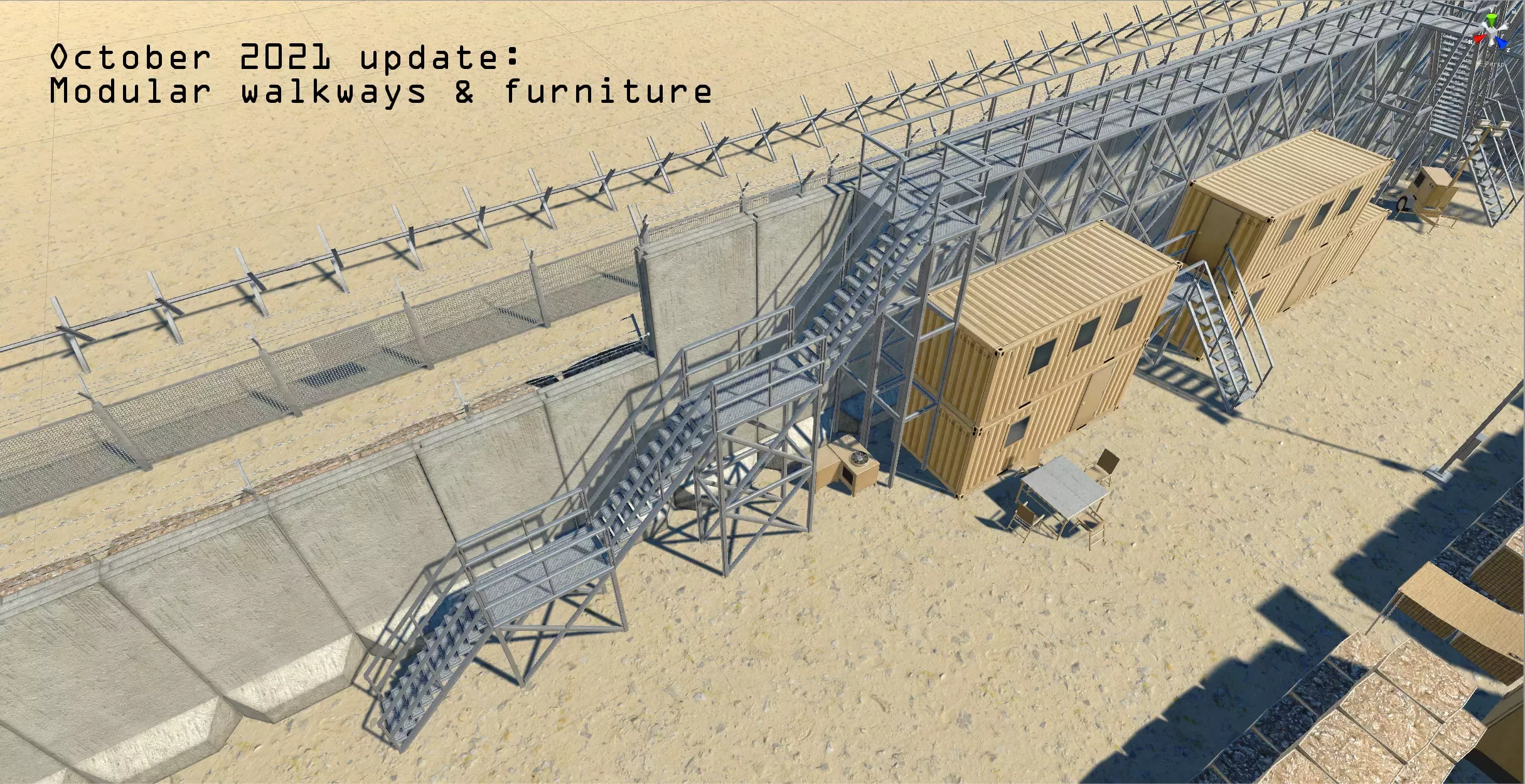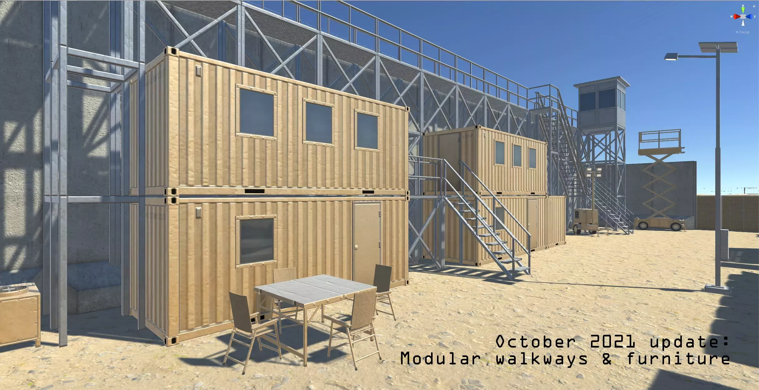 Создавайте массивные передовые оперативные базы, боевые аванпосты, военные контрольно-пропускные пункты и современные укрепления с помощью этого обширного набора оптимизированных низкополигональных активов. Все активы бывают разных цветов, таких как пустынный коричневый, армейский зеленый, серый и белый, и используют ограниченное количество атласов текстур.