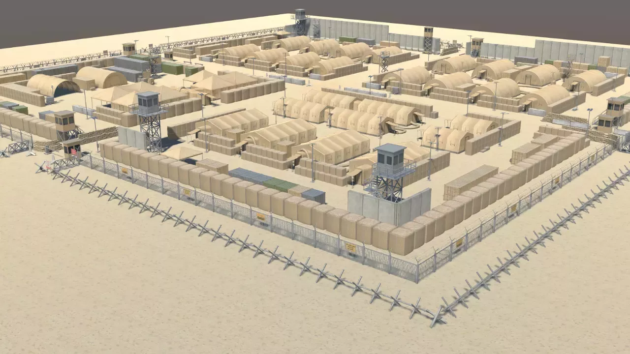 Этот набор содержит более 150 модульных сборных конструкций с возможностью установки до 4-х LOD, начиная от брезентовых палаток и заканчивая сторожевыми вышками, металлическими складами, оборудованием, контейнерами, ящиками, вывесками и включает в себя все более 40 элементов из моего набора барьеров и баррикад, в который входят бастионы Hesco, мешки с песком, бетонные стены Bremer, чешские ежи, ворота и разнообразное фехтование.