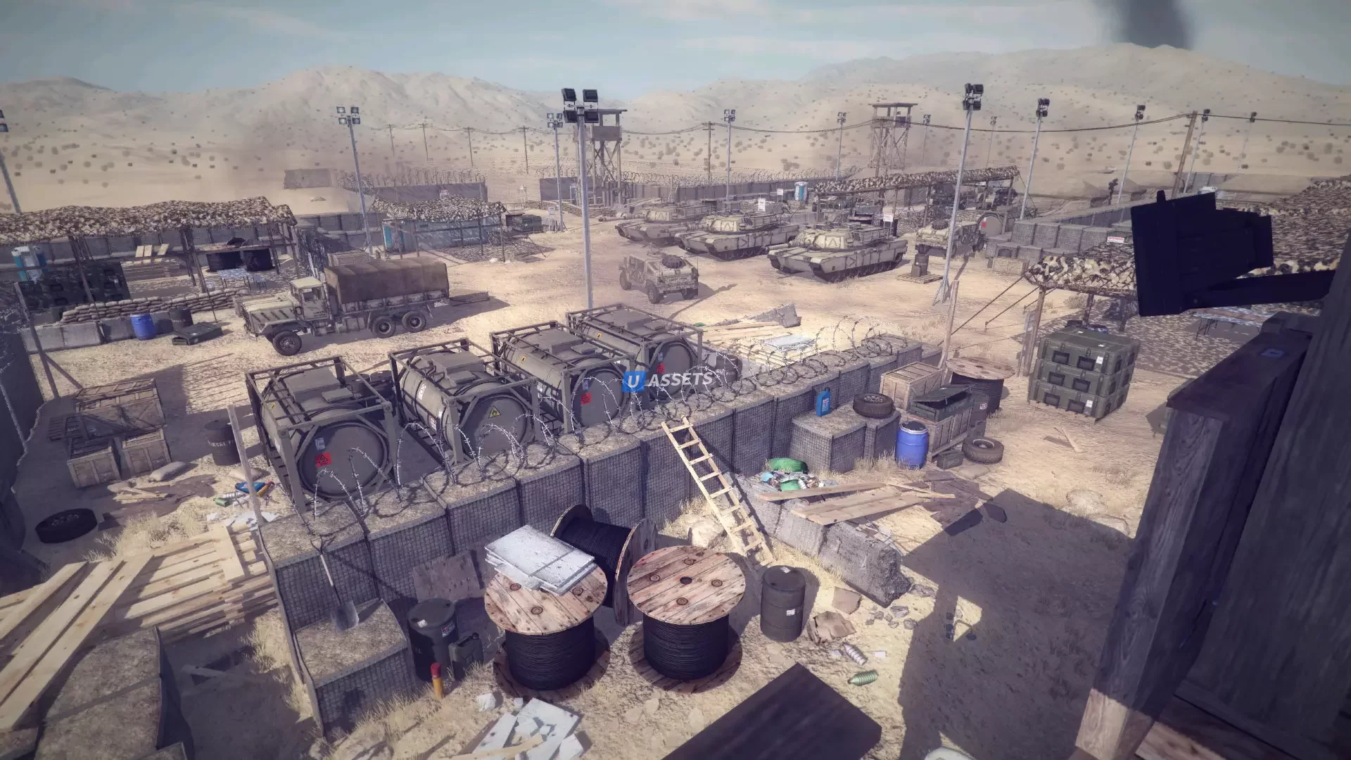 Пакет содержит в себе префабы военной базы. Отлично подойдёт для шутера. Пакет содержит в себе префабы военной базы. Отлично подойдёт для шутера. Пакет содержит: - 136 префабов высокого качества (с LOD) - 4 текстуры земли - 4 вида техники ( имеются 4к