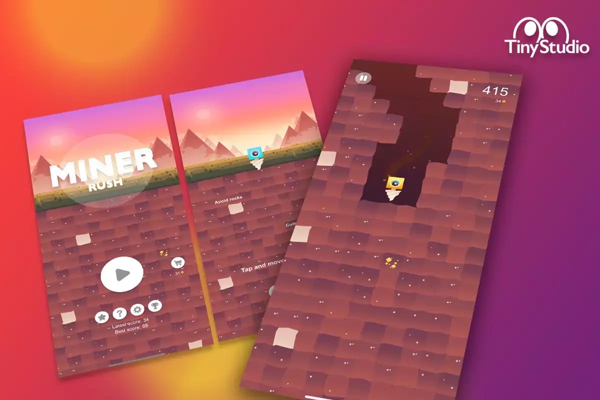 Нажимайте и двигайтесь. Уничтожайте блоки, избегайте камней, собирайте монеты и открывайте новые скины. Это бесконечная игра.