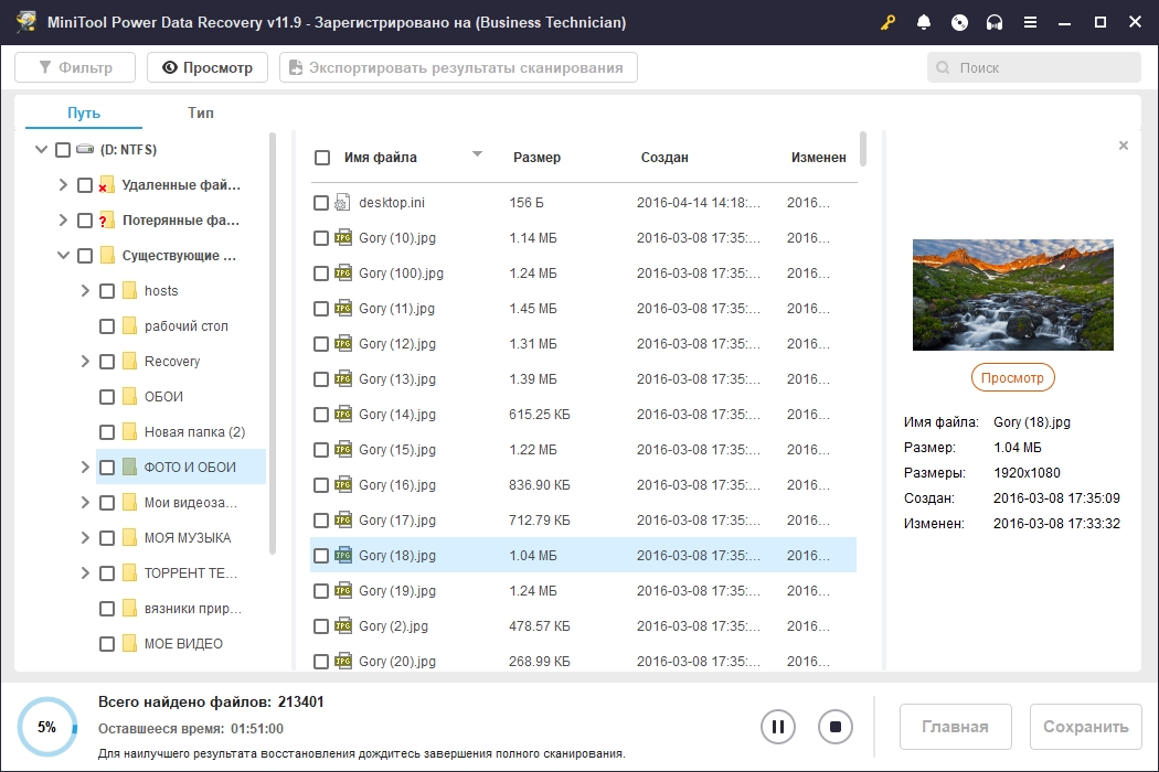 Встроенная функция предварительного просмотра: Позволяет предварительно просмотреть файлы перед восстановлением.