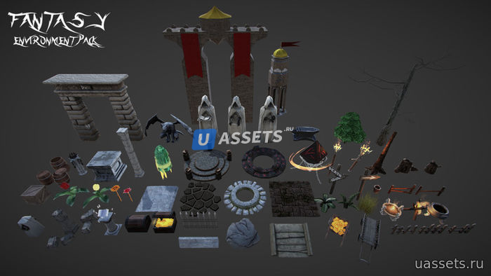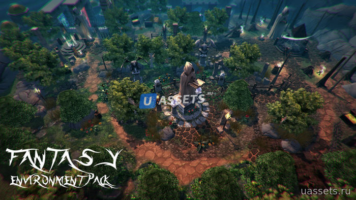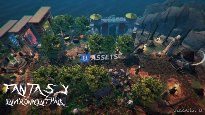 Этот пакет содержит более 50 сборных элементов для создания стилизованной фэнтезийной среды или вашей игры в жанре moba.