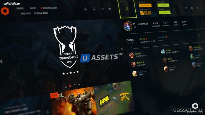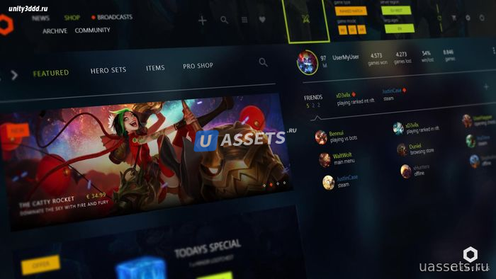 Отличный пользовательский интерфейс для вашей МОБА-игры. Если вы хотите создать MOBA-игру, похожую на AAA, и вам нужен пользовательский интерфейс? Чем это то, что вы ищете. Этот пользовательский интерфейс содержит Начало, Магазин, Настройки, Лобби и Выбор героя.