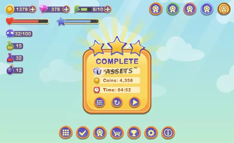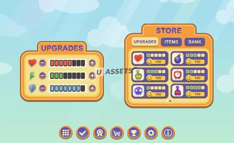 Это удобный для мобильных устройств графический интерфейс с более чем 100 высококачественными элементами. Атласы готовы ускорить ваш процесс разработки и придать ему профессиональный вид. Его стиль позволяет использовать его в различных играх.