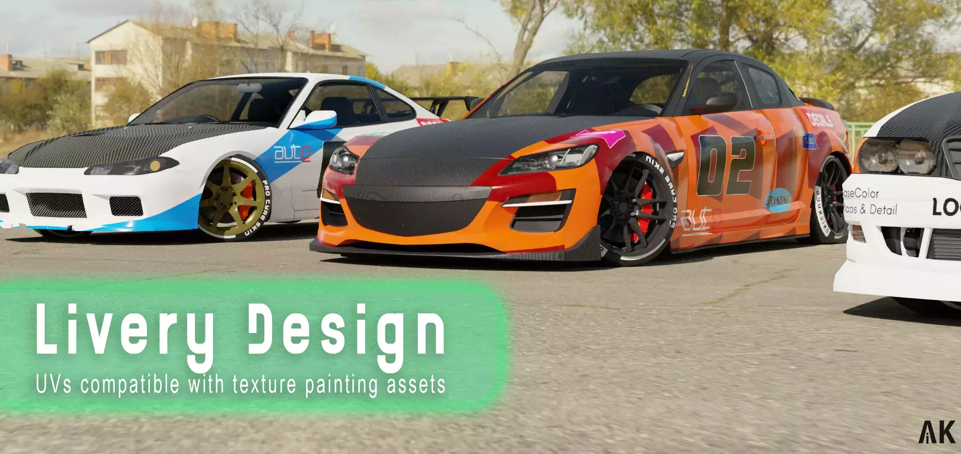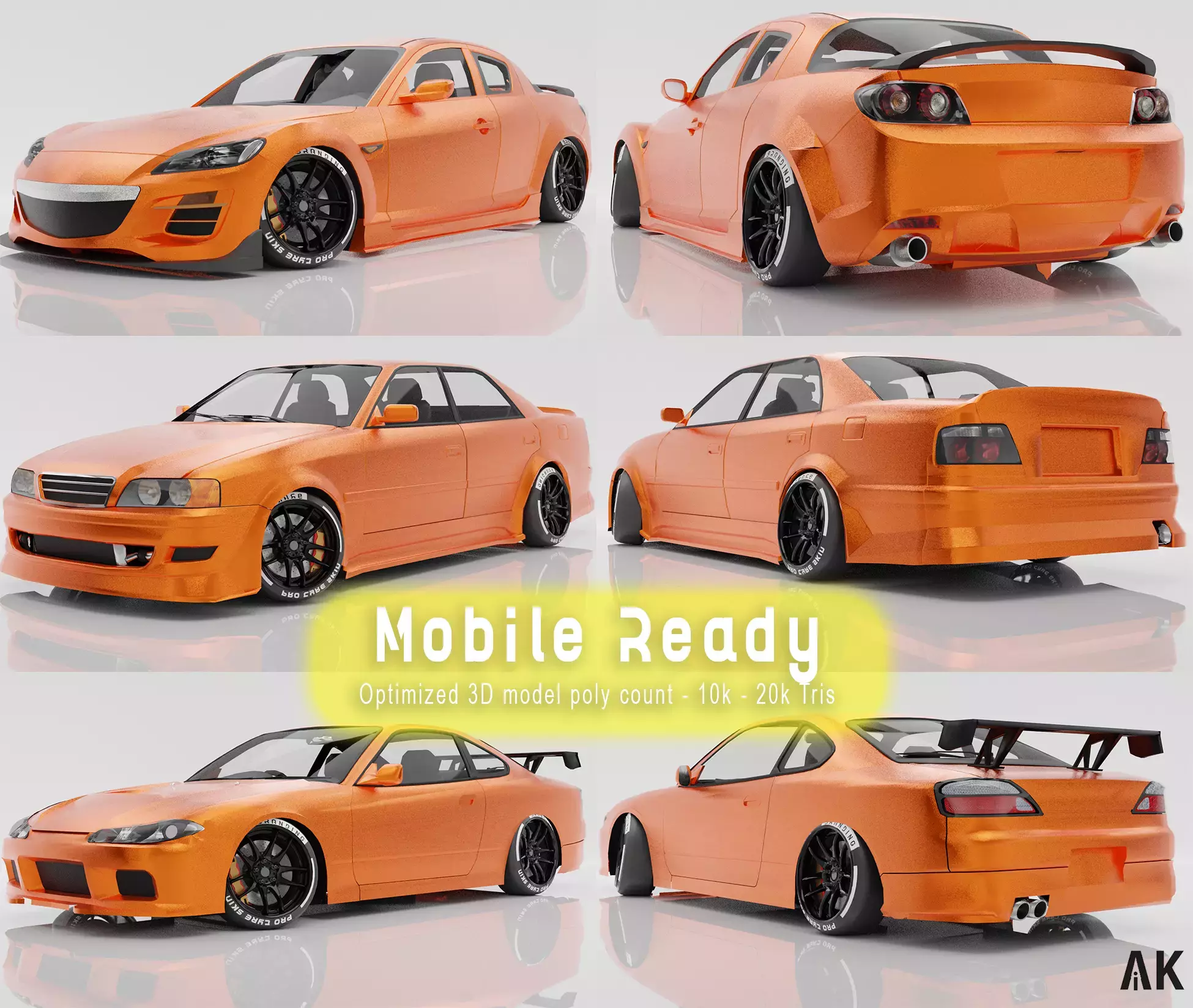Запустите свою мобильную дрифт-гоночную игру с пакетом, который включает в себя готовый к запуску пакет автомобилей.