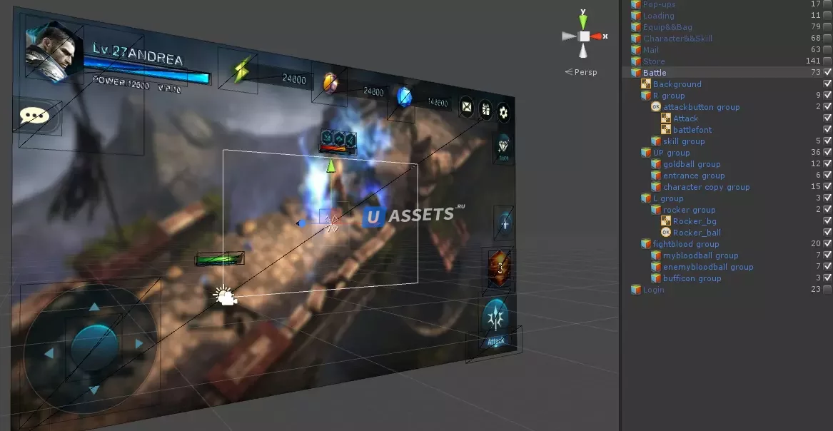 Пользовательский интерфейс удобен для мобильных устройств Unity UGUI. Хороший выбор для любой игры в стиле фэнтези