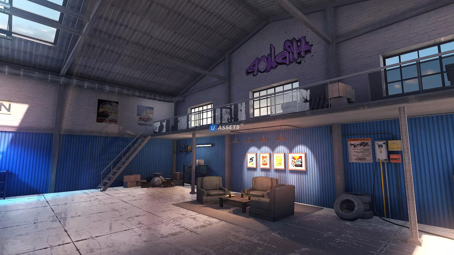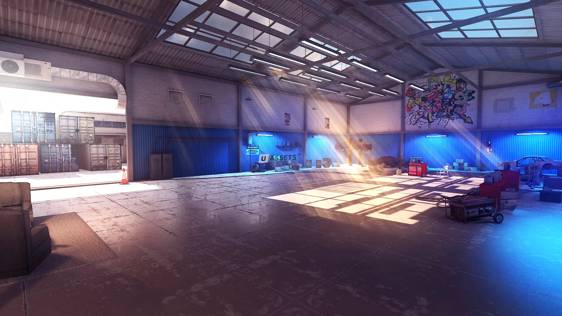 Материалы легко менять. Для сцены использовано всего 5 материалов. Текстуры пола и пола автомобиля имеют разрешение 1024x1024, а другие — разрешение 4K.