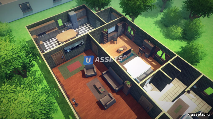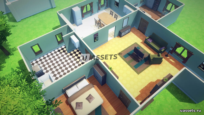 В наборе вы найдете: стены, лестницы, полы, мебель, аксессуары, картины, растительность, демонстрационный уровень. Пак без проблем работает на мобильных устройствах.