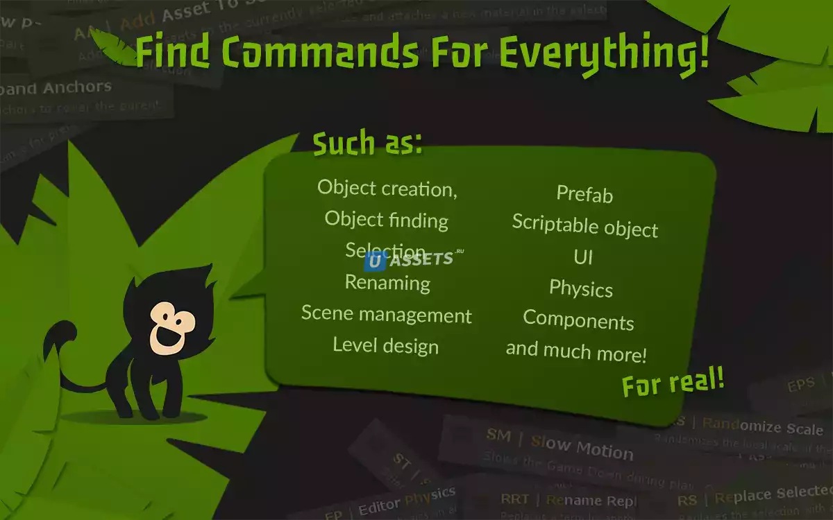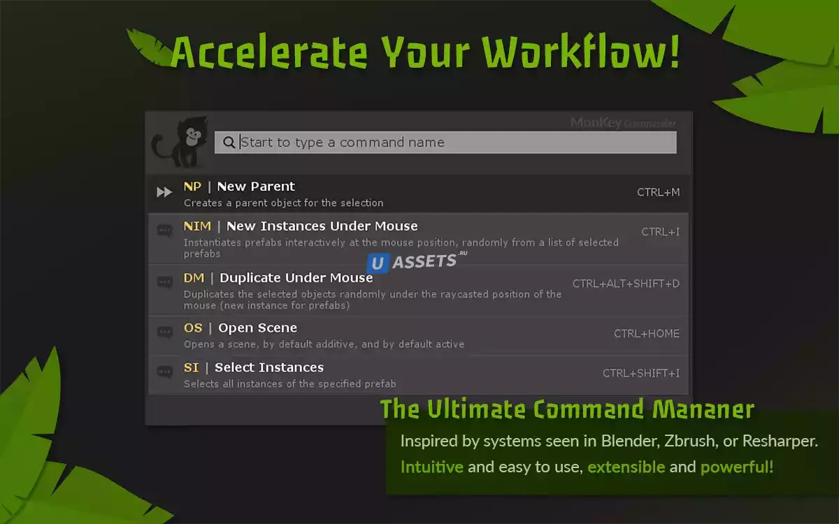 MonKey - это непревзойденный ускоритель производительности и рабочего процесса для Unity, предоставляющий вам самый простой и эффективный способ использования редактора благодаря его умному менеджеру команд!