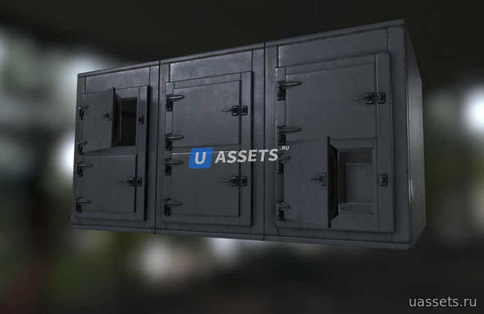 Содержимое: Трупы, мешки для трупов, холодильник, складная ширма, тележка, стол для вскрытия, рабочая лампа, носилки, тележка, медицинские инструменты и лампы.