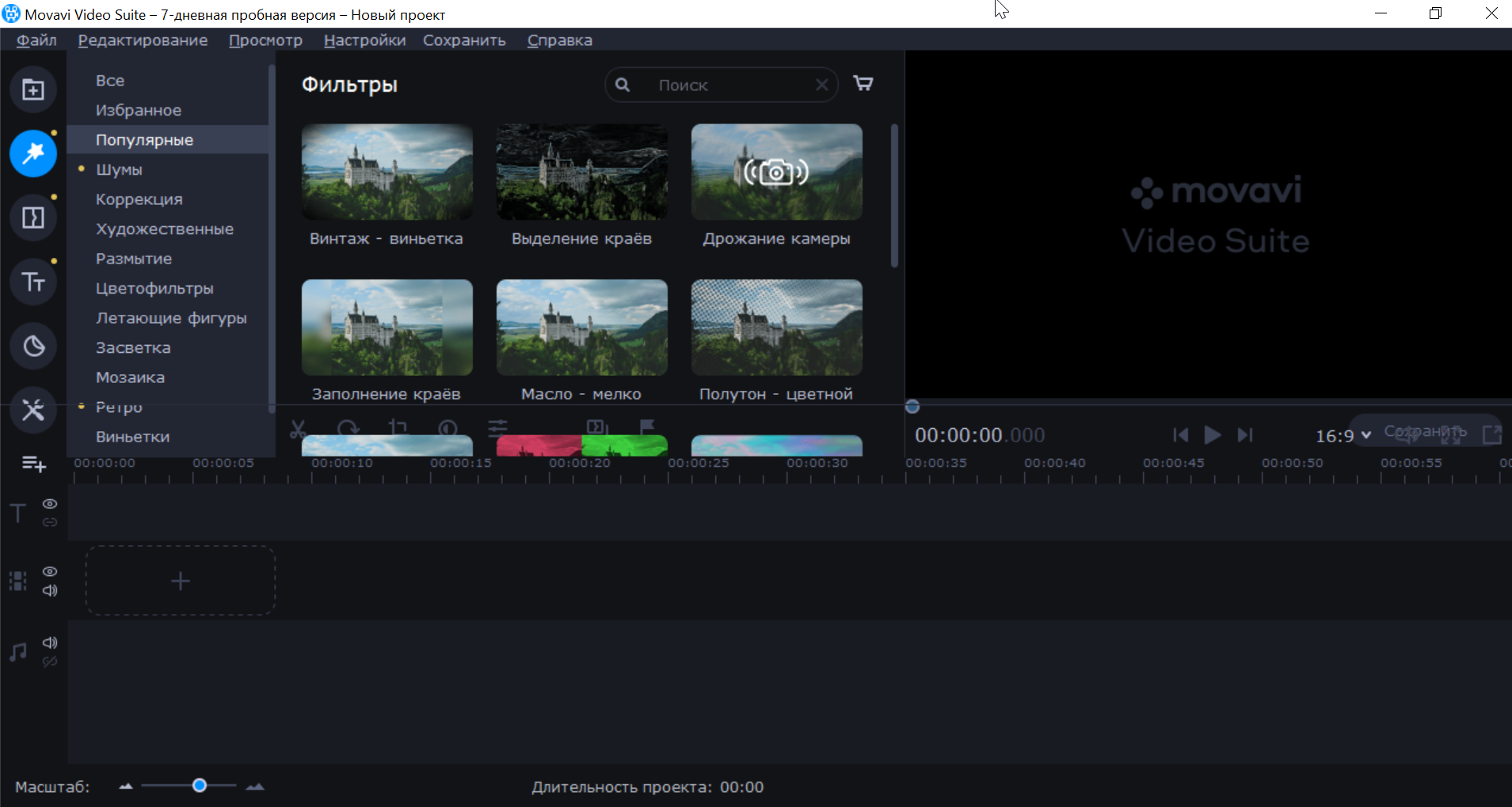 Редактируя видео файлы, мы сможем вырезать ненужные фрагменты, добавить эффекты перехода и графические фильтры, а также вставить субтитры. В категории аудио вы получите доступ к функциям, отвечающим за конвертацию, запись CD-Audio и MP3-носителей, а также захват звука из любого источника. Для фотографий вы сможете создавать слайд-шоу. Movavi Video Suite предоставит пользователям различные мультимедийные инструменты, позволяющие им редактировать, создавать или просматривать.