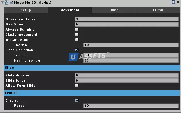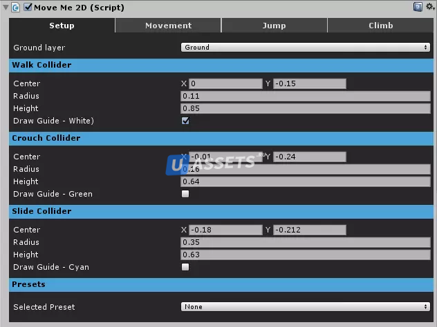 Двигай меня! 2D-контроллер с боковой прокруткой для новых и опытных разработчиков игр. С этим активом вы сэкономите время на кодировании, абстрагируя жесткий код и позволяя легко настраивать движения и действия вашего персонажа.
