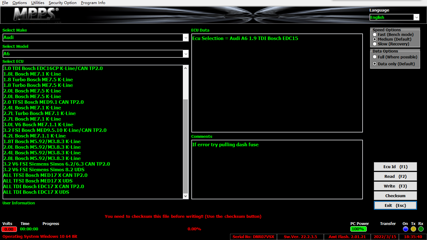 MPPS V22 — мощный и весьма удобный инструмент программирования ЭБУ. Основные функции: чтение/запись/контрольная сумма, также включает в себя некоторые дополнительные функции: