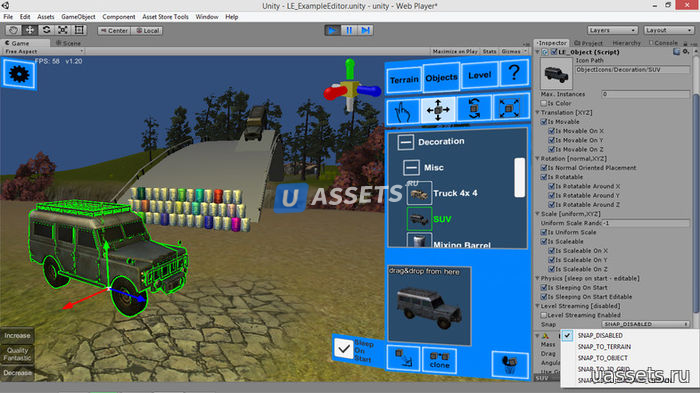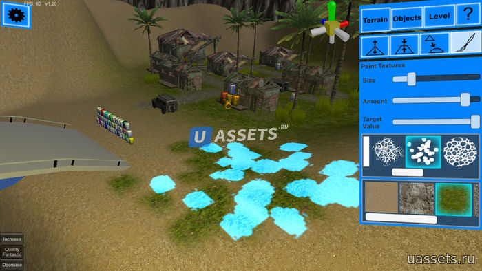 - редактор ландшафта (использует Unity Terrain Engine)