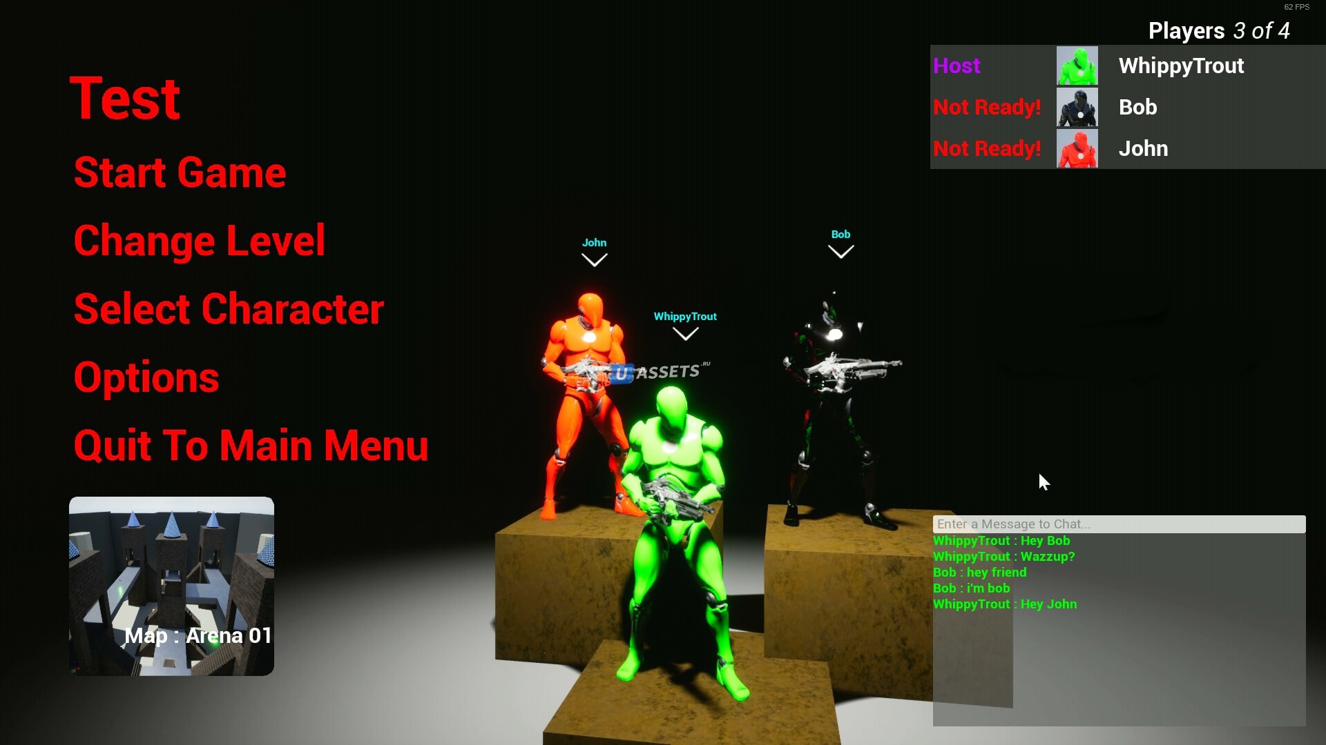 Предигровое лобби (с выбором персонажа и уровня)