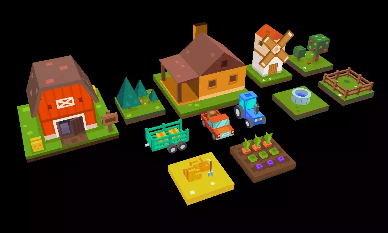 Этот предмет содержит Этот предмет содержит: • Мельницу • Амбар * Трактор • Фургон • Автомобиль • Загон для скота * Сосны • Яблони • Дом * Овощи • Колодец * Вилы • дорожный указатель • дорожный перекресток • конец дороги • дорожная трава •