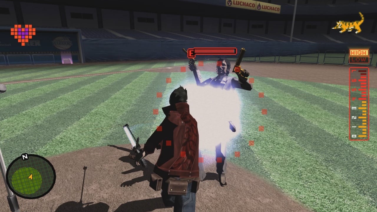 В No More Heroes есть основные сюжетные задания и множество побочных миссий. За успешное выполнение квестов вы получаете деньги. Накопленные средства можно тратить на покупку оружия, улучшений и различных бонусов. Главный герой сражается с помощью лучевой катаны, которая позволяет отрубать врагам головы и конечности. Протагонист занимает 11-е место в рейтинге Объединённой ассоциации убийц. Чтобы подняться на первую строчку, ему нужно убрать с дороги десять высококлассных бойцов. Как истинный ловелас, у Трэвиса есть очаровательная девушка, общение с которой становится частью игрового прогресса. Ключевые особенности игры No More Heroes: