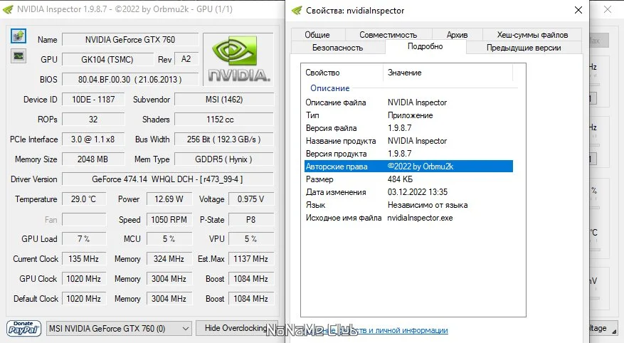 NVIDIA Inspector 1.9.8.7 Beta — это компактная и мощная утилита для мониторинга, разгона и получения детальной информации о видеокартах NVIDIA. Программа предоставляет полный контроль над ключевыми параметрами графического процессора, включая частоты ядра и памяти, напряжение, температуру и скорость вращения вентиляторов.