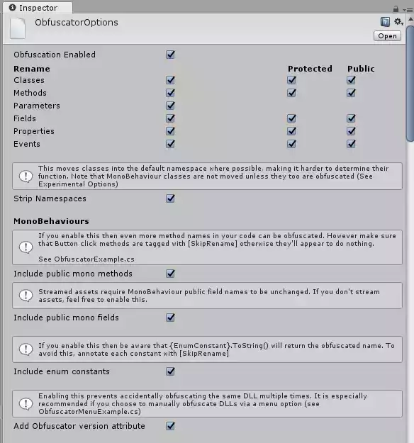 Главным приоритетом этого пакета является работа "прямо из коробки" без каких-либо дополнительных действий. В то время как другие обфускаторы могут помешать работе игры, обфускатор Beebyte ищет конкретный код, связанный с Unity, который должен быть защищен. Содержимое ваших исходных файлов остается неизменным, запутывание нацелено на скомпилированную сборку.