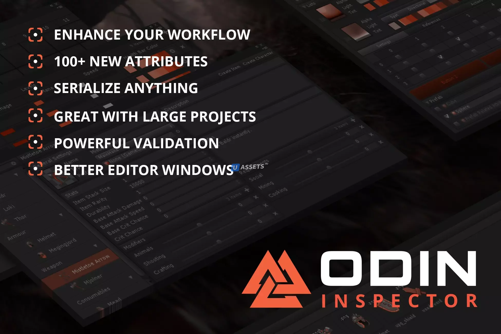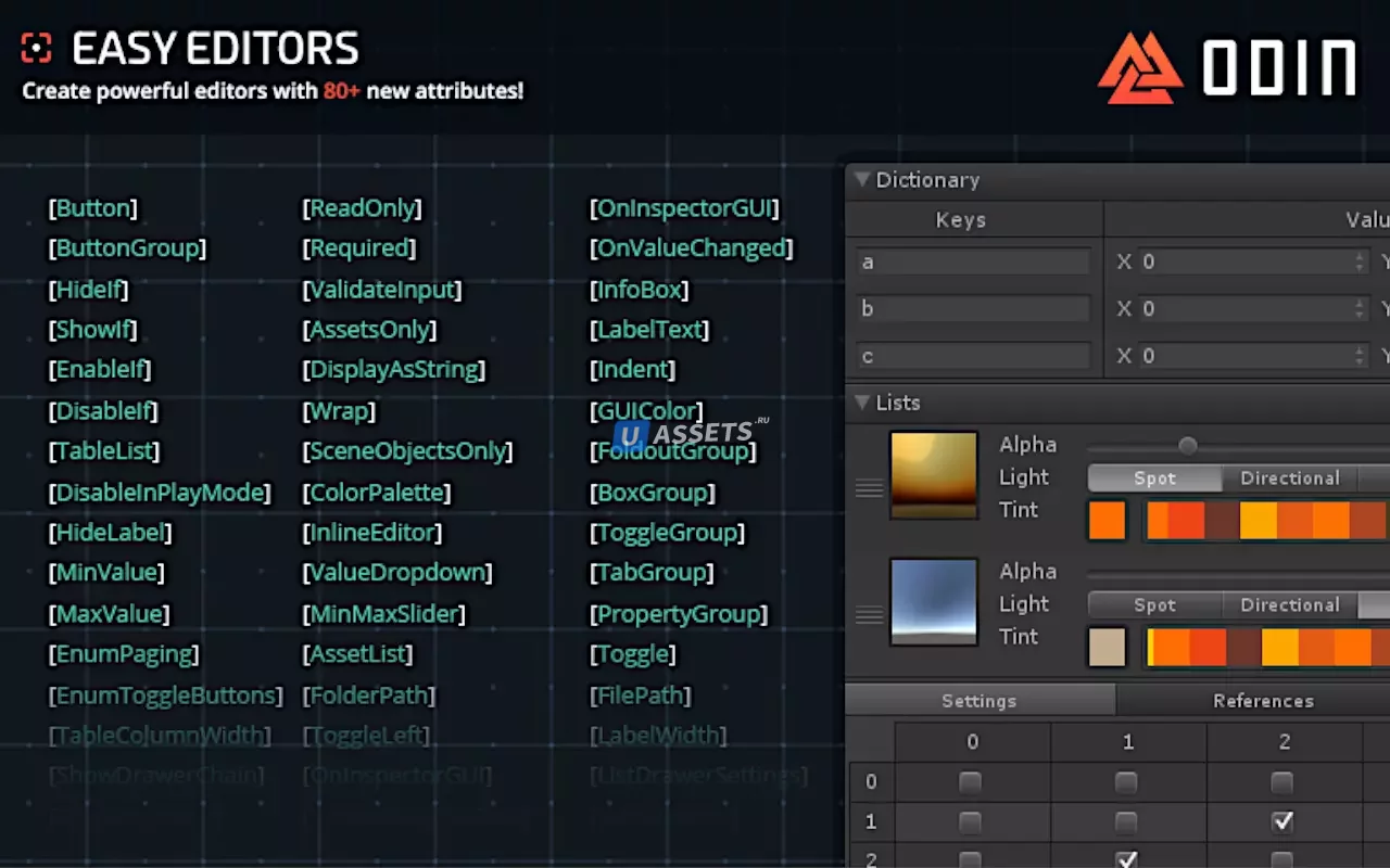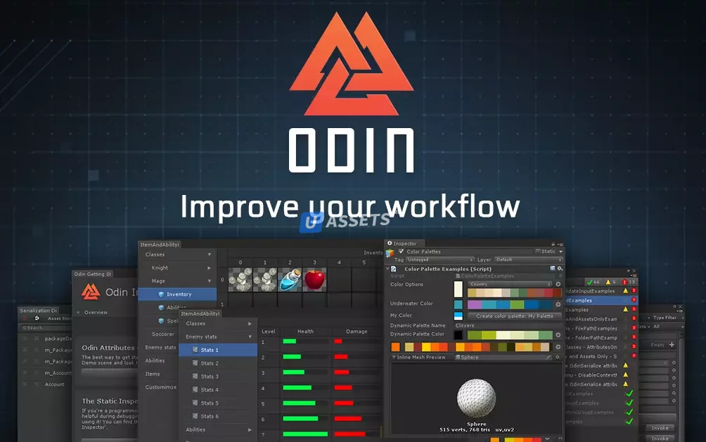 Благодаря легкой интеграции, которая идеально вписывается в уже существующие рабочие процессы, Odin позволяет вам сериализовать что угодно и наслаждаться Unity с более чем 80 новыми атрибутами инспектора, без шаблонного кода и многого другого!